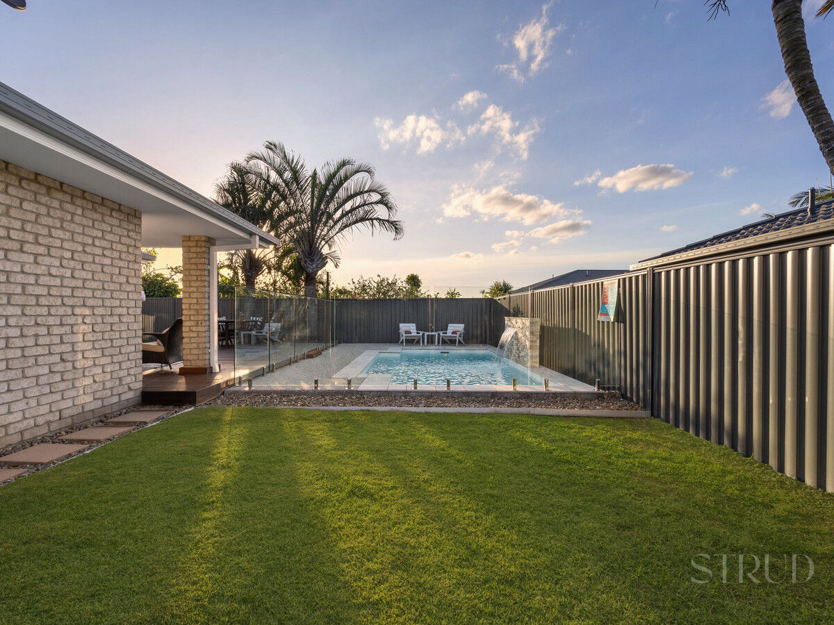 The true highlight awaits outdoors. The rear of the home opens to a beautifully maintained deck overlooking a sizeable yard, a sparkling magnesium pool with built-in fountain feature and a large shed. This private oasis provides an unbeatable setting for year-round family fun and entertaining.