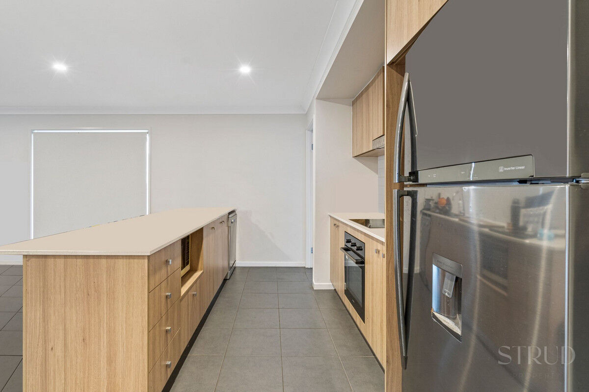 Light-filled open-plan living area that serves as the heart of the home. With its seamless flow from the living room to the dining area and kitchen, this space is ideal for both intimate family gatherings and entertaining guests with ease. The sleek and modern kitchen is a chef’s delight, boasting high-end appliances, ample storage, and a large island bench for casual dining or meal preparation.