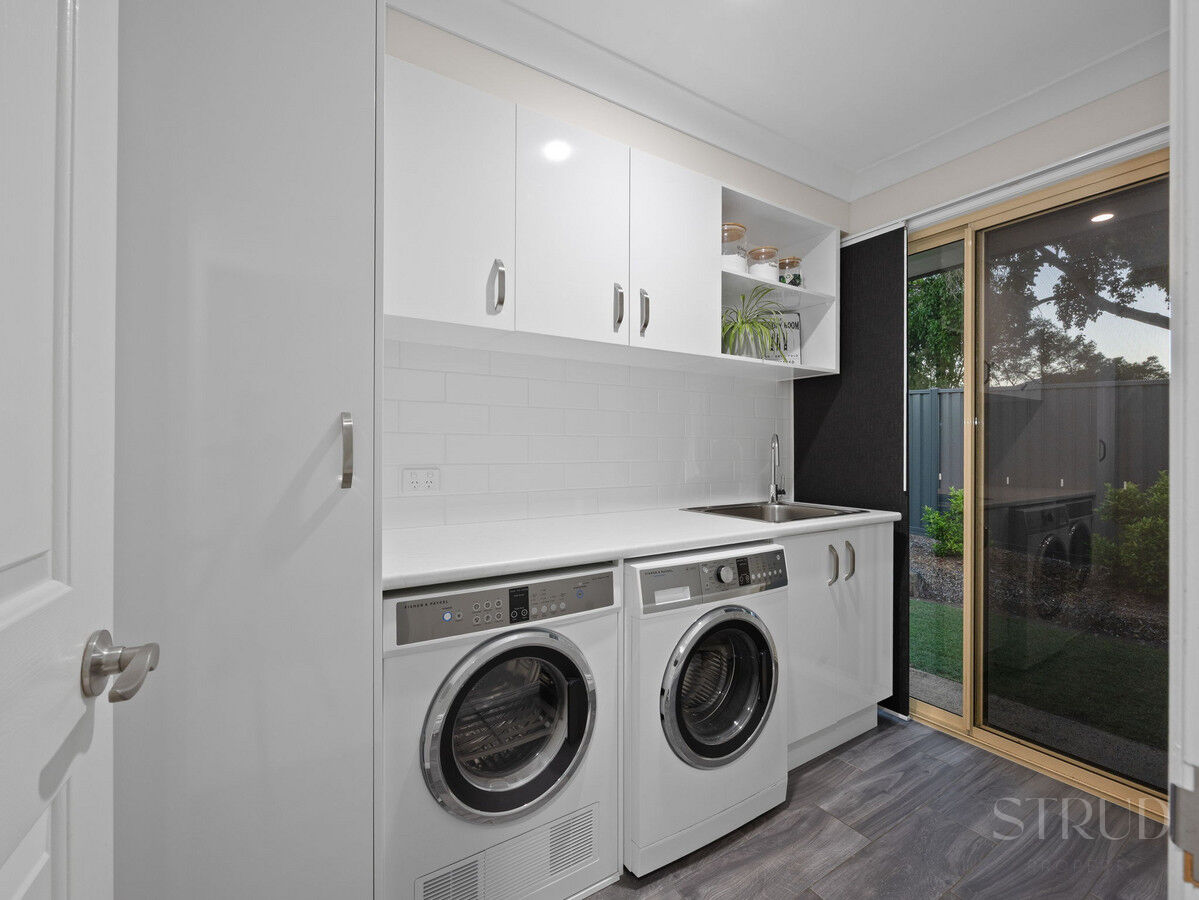 A dedicated laundry with external access adds further practicality, and the property is completed by a double lock-up garage and an additional shed, providing excellent storage options.