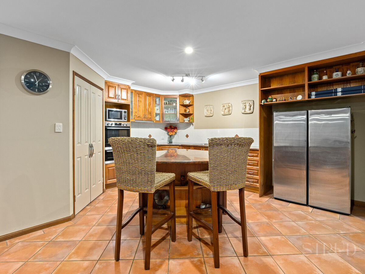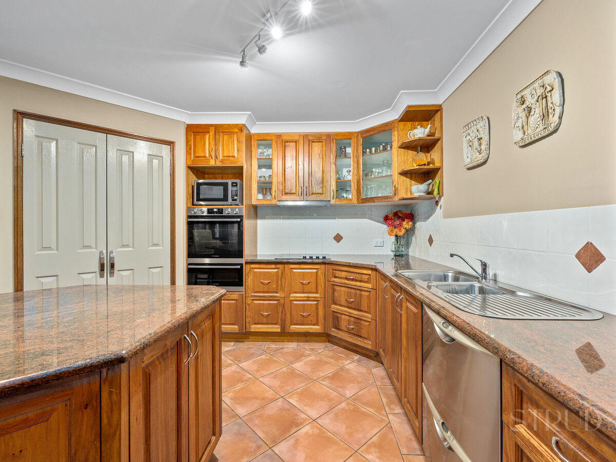 Step into the kitchen marrying rustic charm with modern flair. Hardwood cupboards exude warmth, while a red granite island bench adds a bold, luxurious touch. This kitchen is a harmonious blend of classic and contemporary design, where every detail contributes to an inviting culinary space.