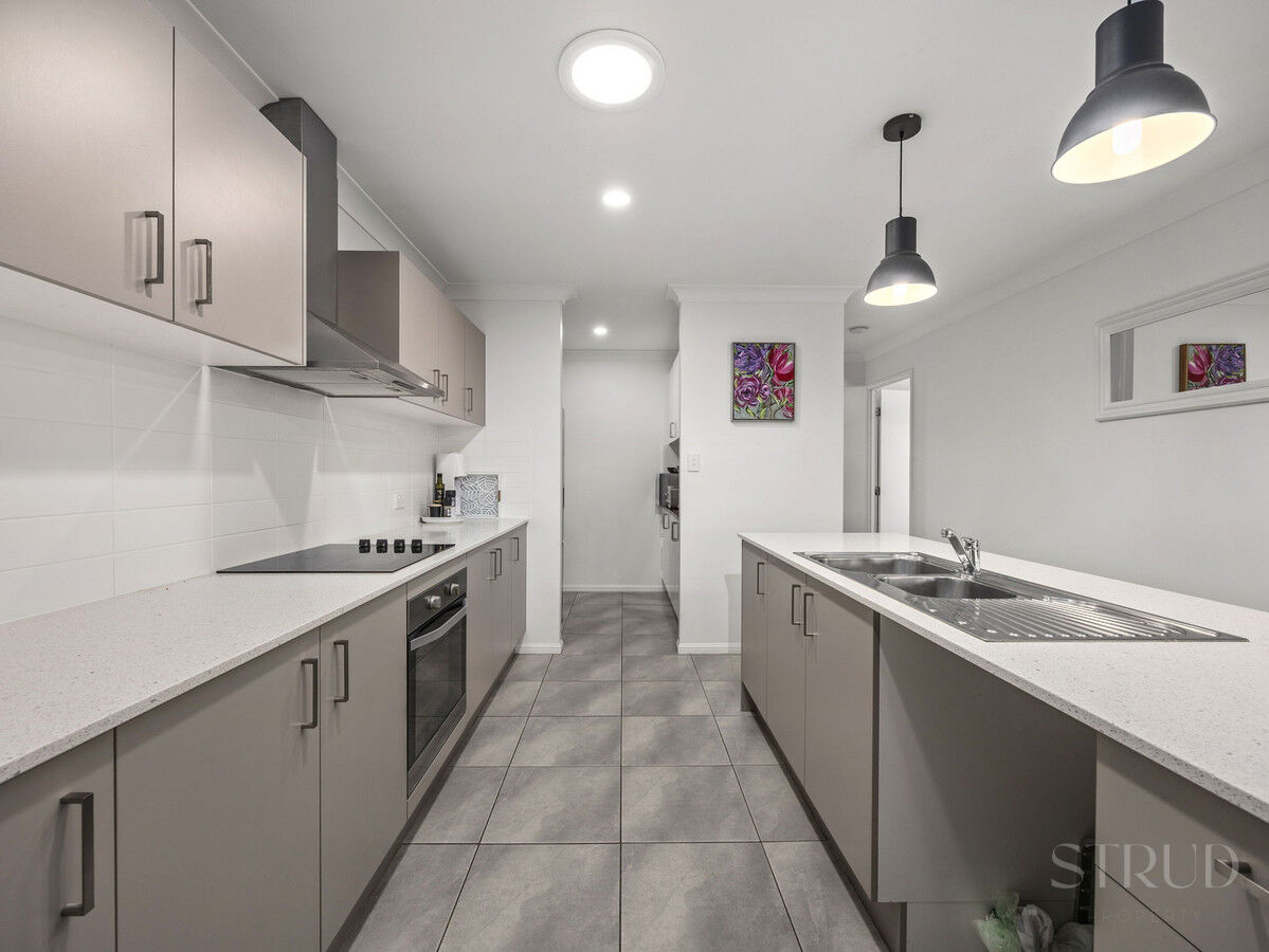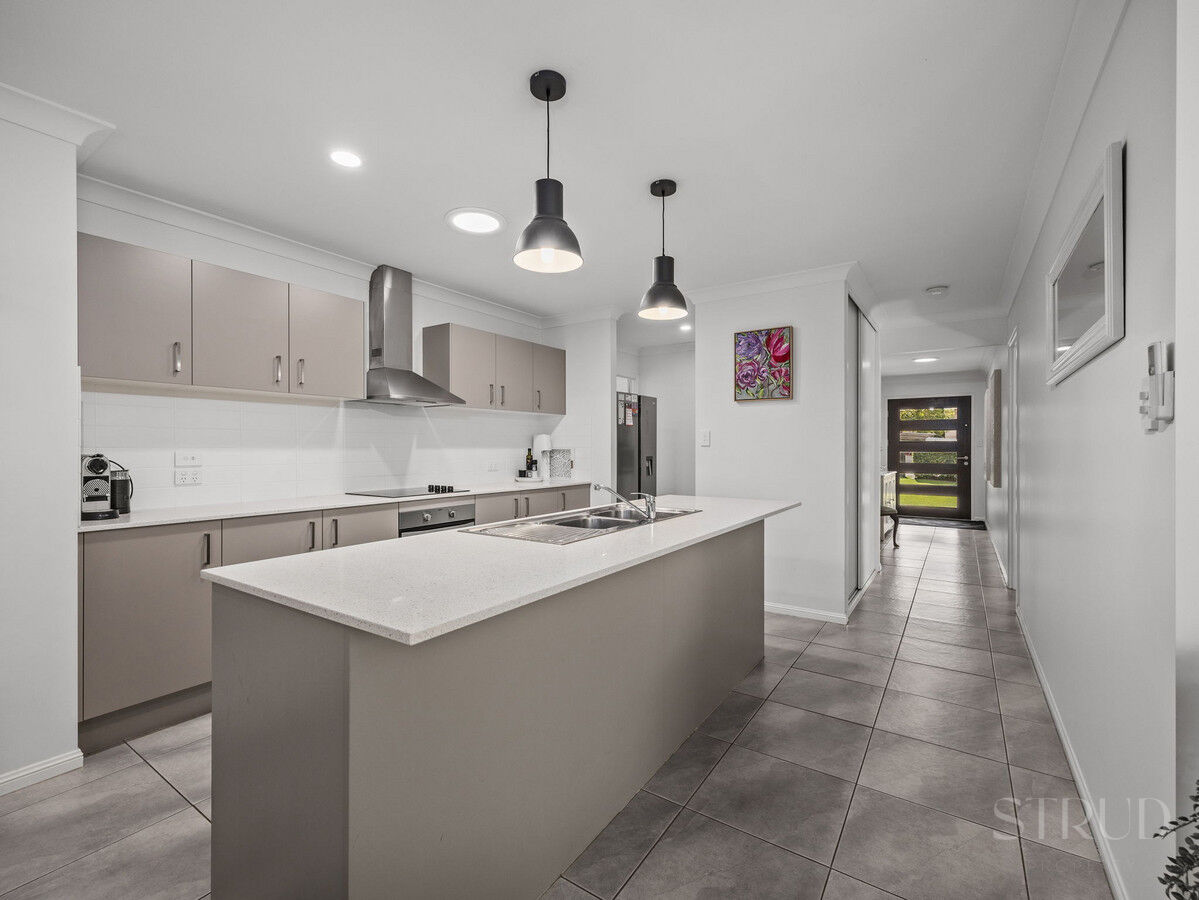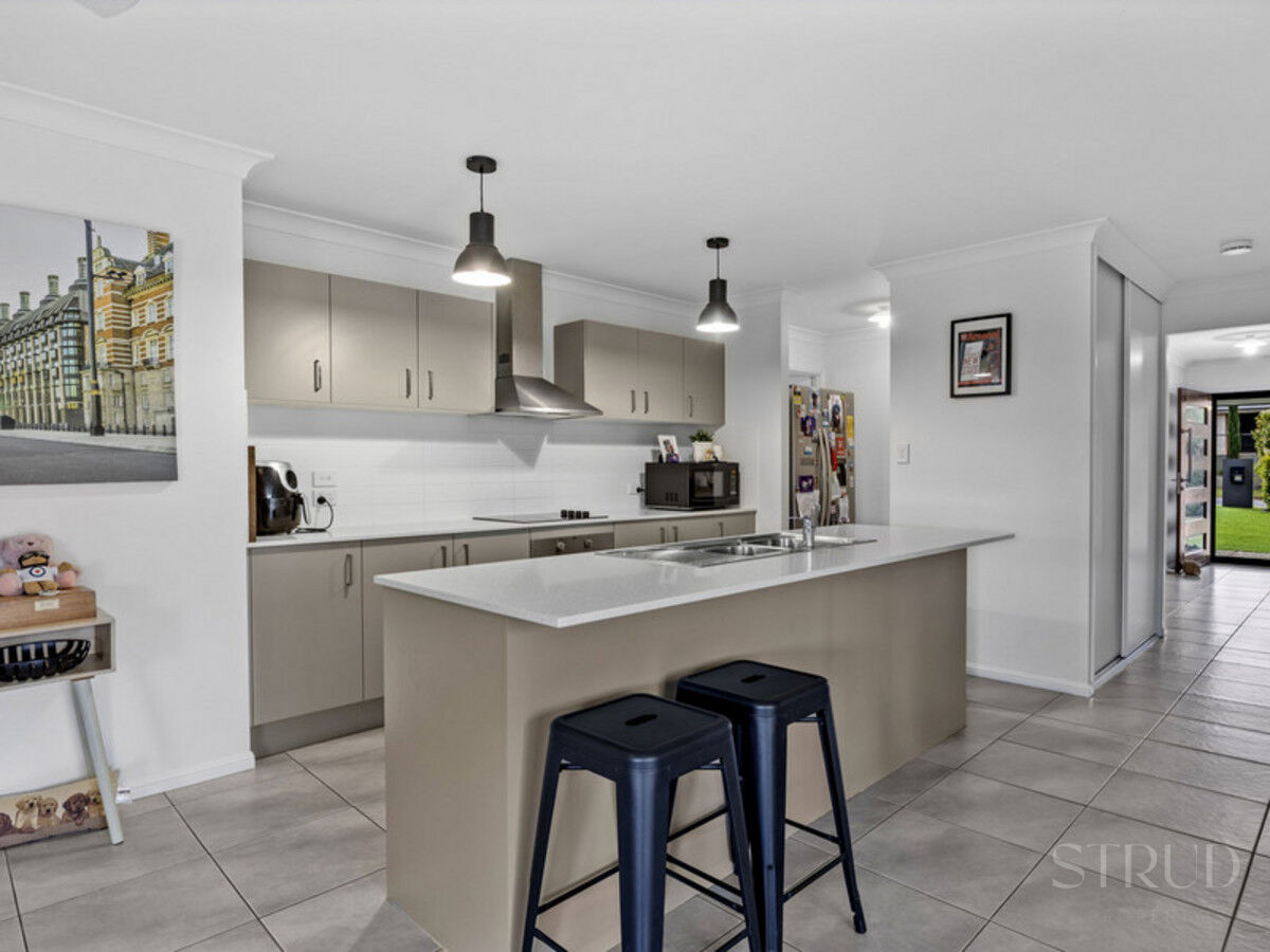 As you step inside, you’ll be greeted by a spacious and light-filled interior. The open-plan living and dining areas are designed for effortless entertaining and family living. The well-appointed kitchen, complete with modern appliances, ample storage with butlers breakfast pantry + a breakfast bar, serves as the heart of the home. The adjoining living space flows seamlessly to the outdoor entertaining area, creating a perfect indoor-outdoor living experience.
