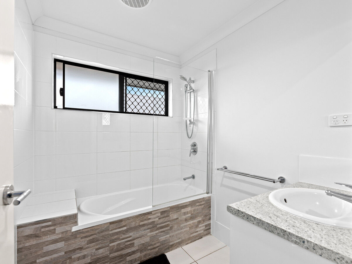 The main bathroom services the rest of the family and has separate shower and bath tub, large vanity basin and the separate loo.