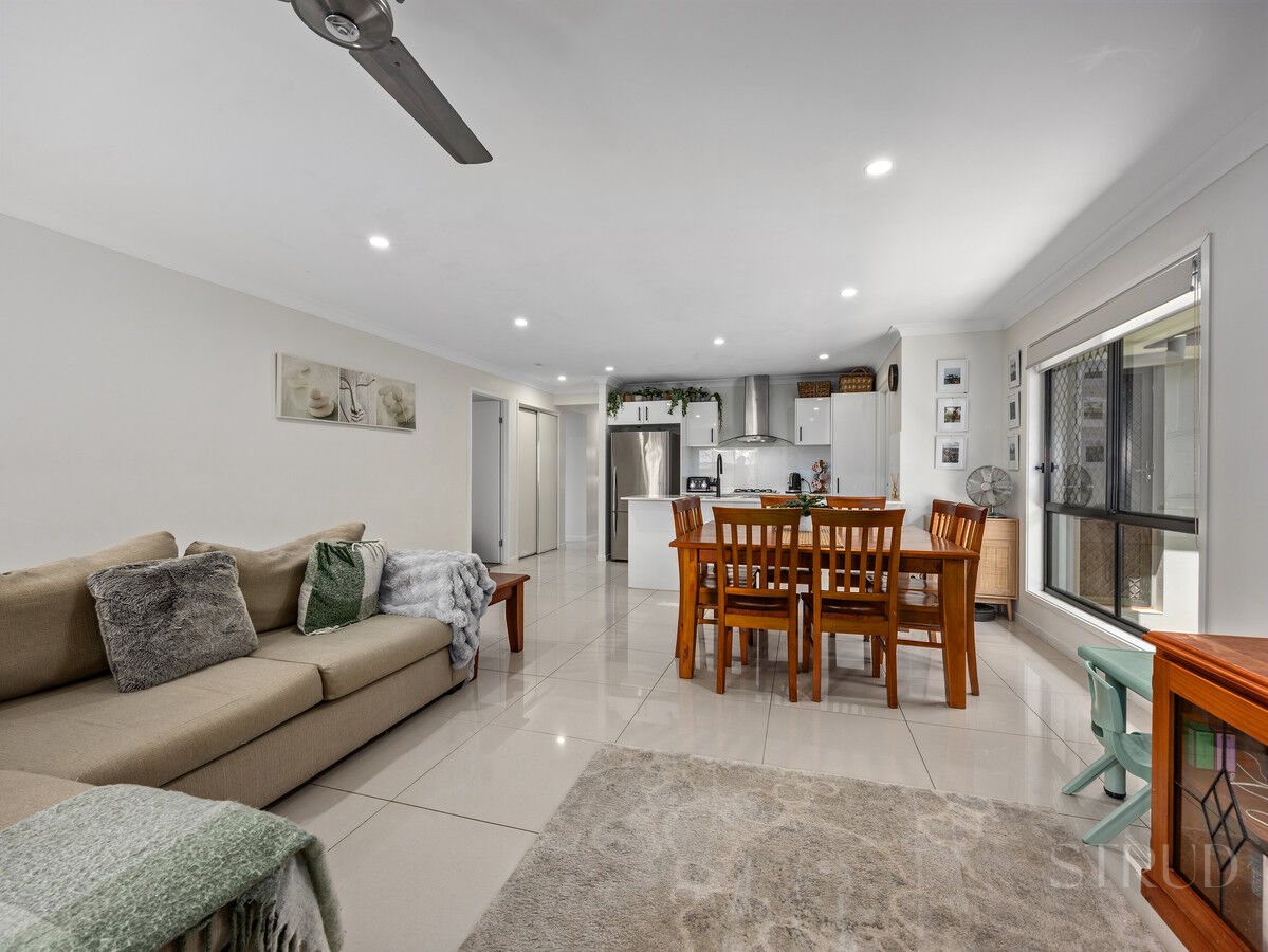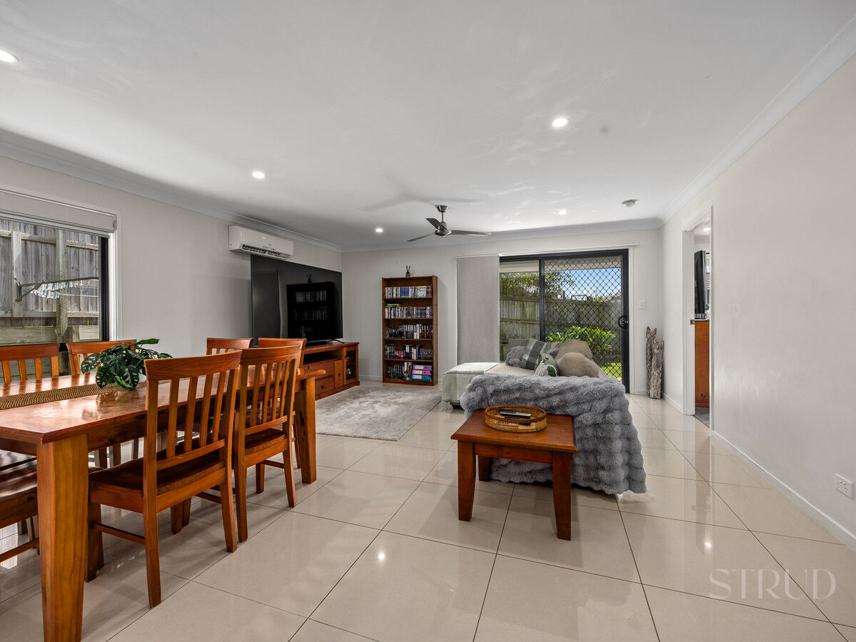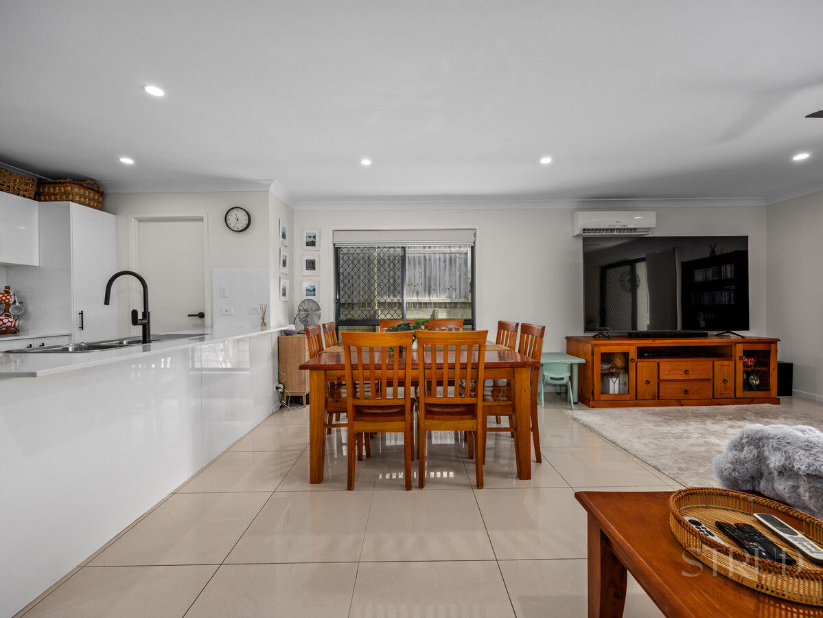 The open planned living and dining space offers air-conditioning and direct access to the outside patio, making indoor/outdoor living seamless.
