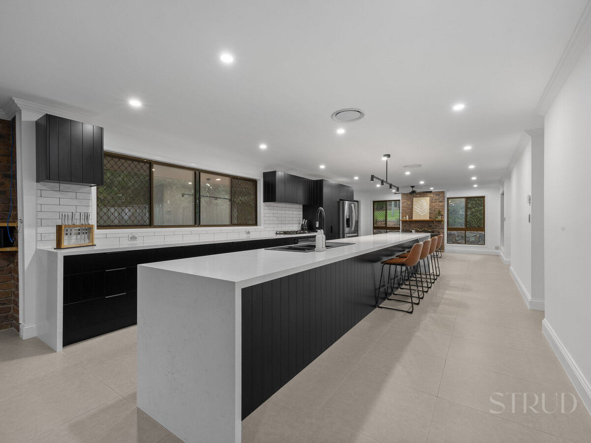 Freshly renovated and luxuriously appointed, this stunning residence on a 1,587m² block in the heart of Karalee offers relaxed family living with high-end finishes and striking design throughout. Positioned at the end of a peaceful, established street, this move-in ready home is a statement in modern style, functionality and indoor-outdoor flow.