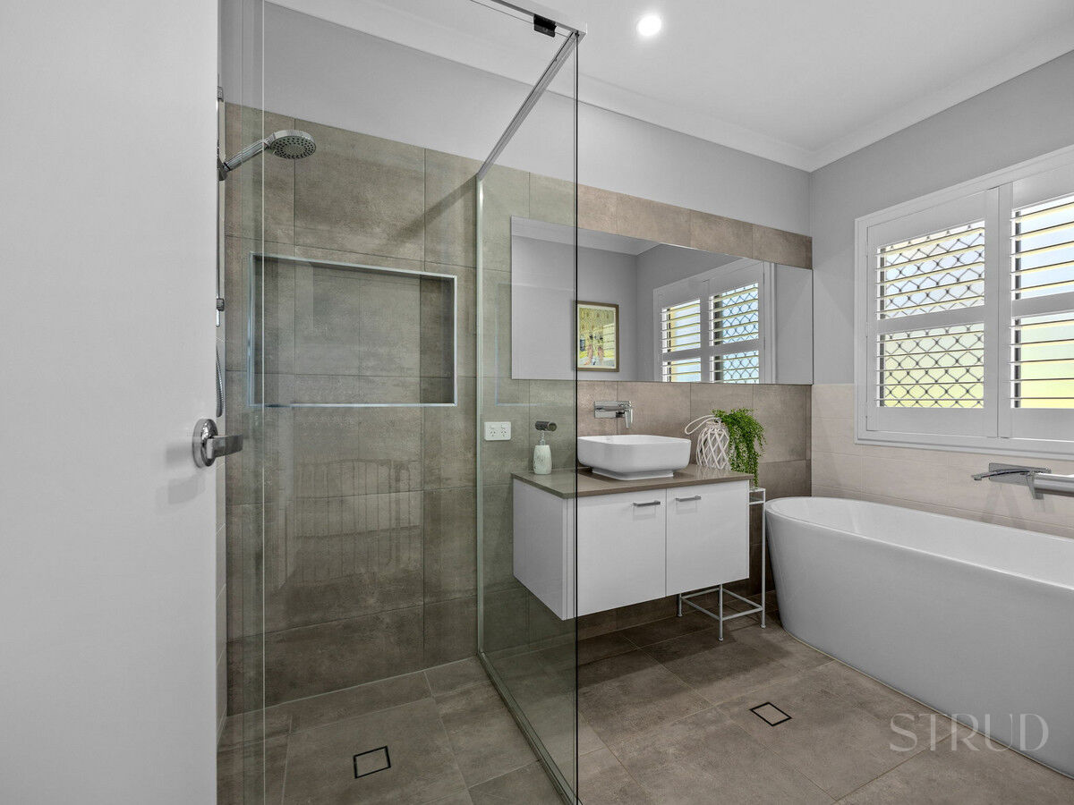– Master Bedroom w/ Walk in Robe. Ensuite w/ His & Her Vanity, Bathtub, Shower Niche & Seperate Toilet