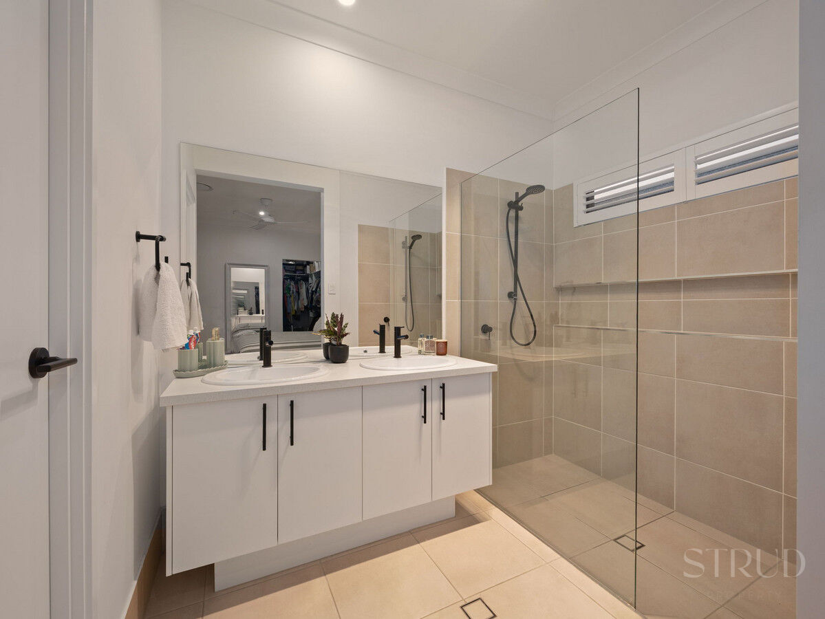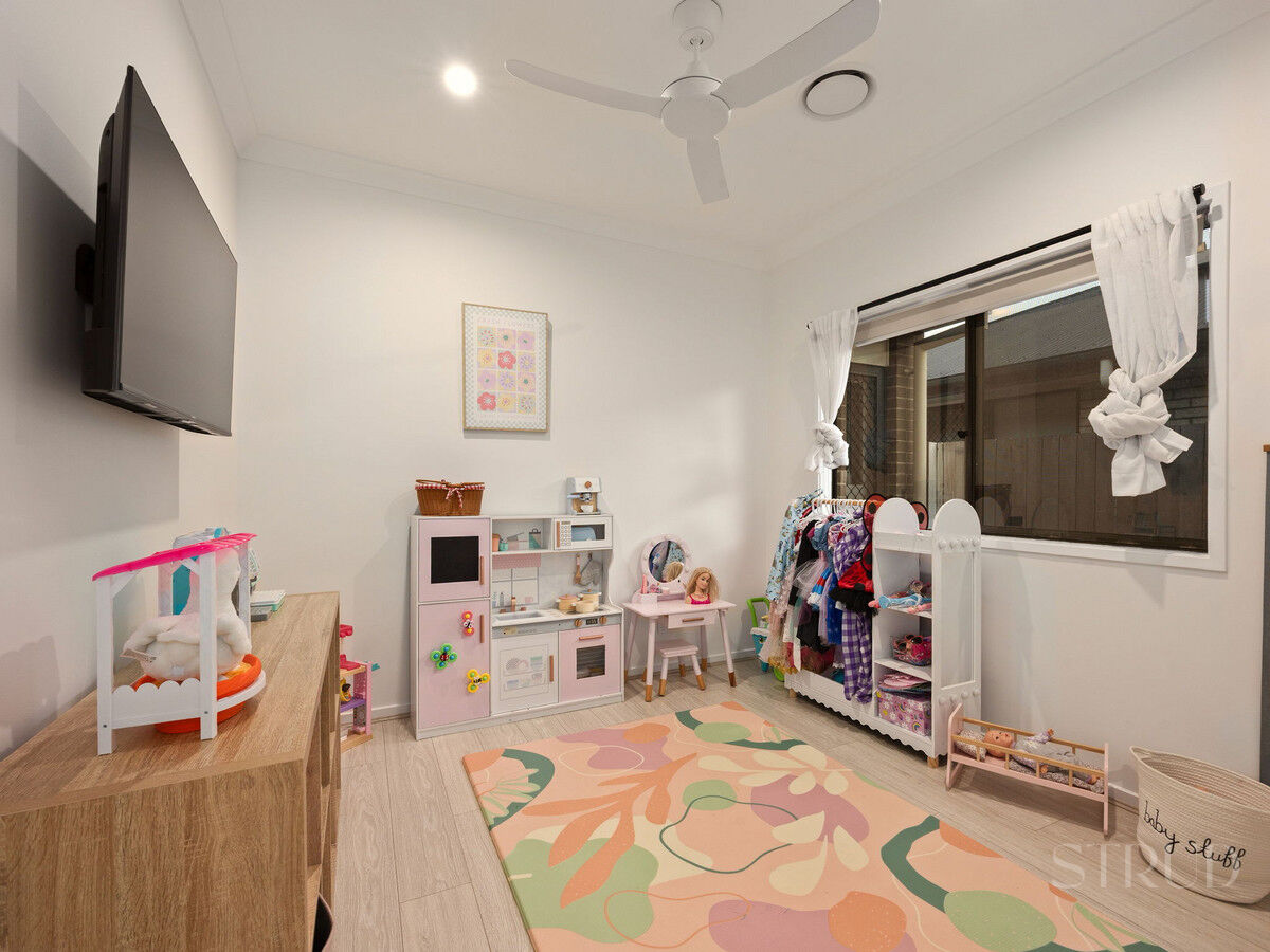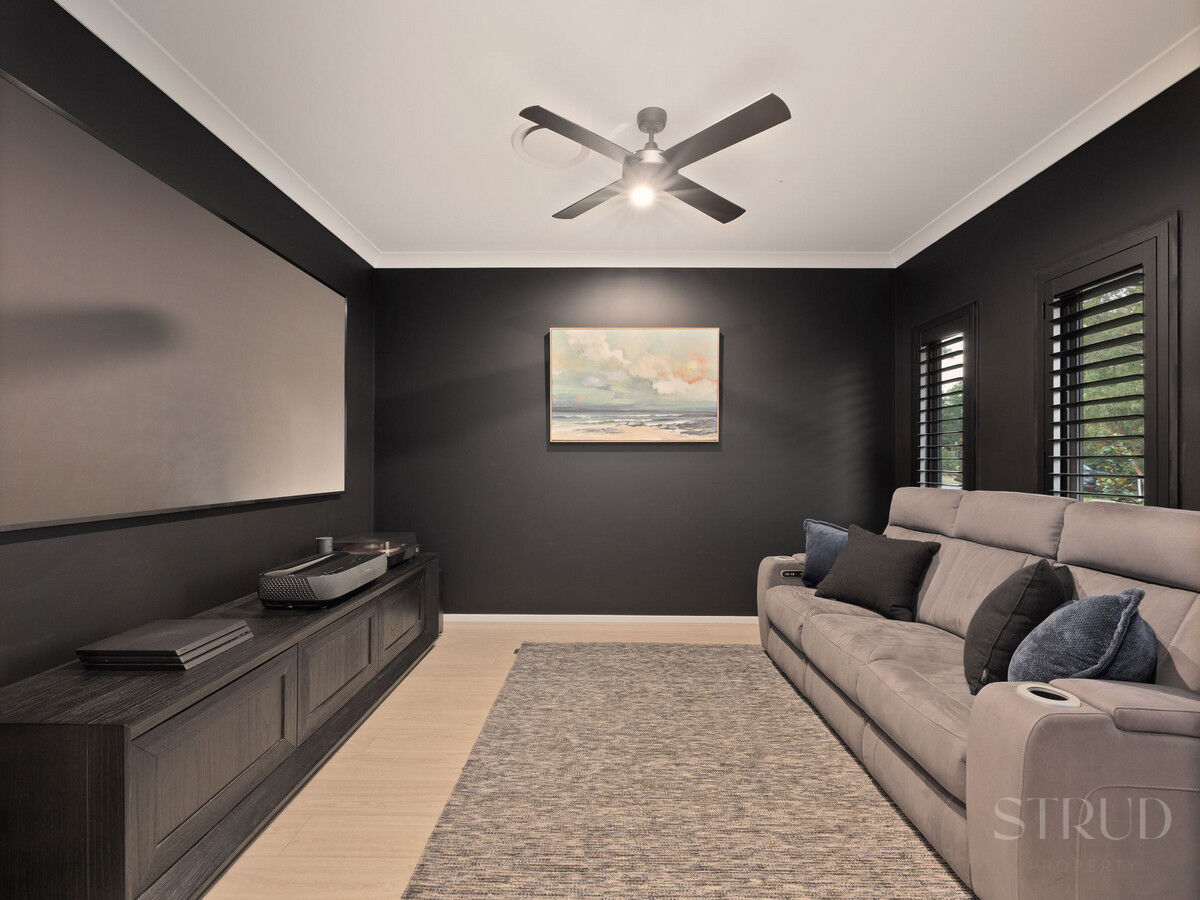 The home adapts to you. Ducted air conditioning keeps every space comfortable year-round, controlled effortlessly through smart technology. A separate media room adorned with plantation shutters offers a quiet escape for movie nights, downtime, or just a space to switch off from the day.