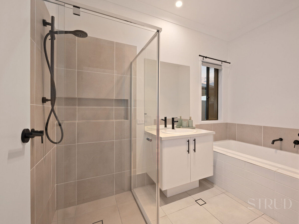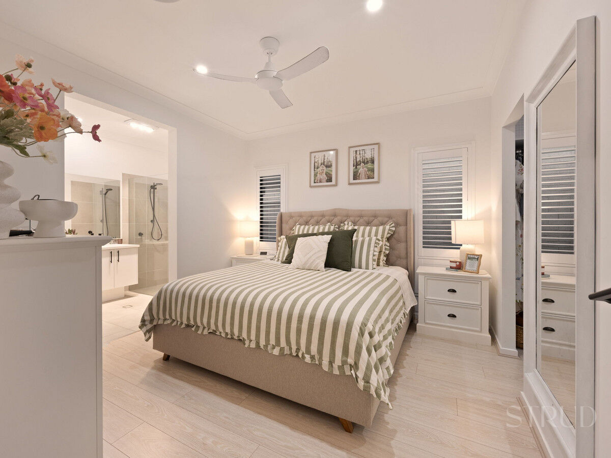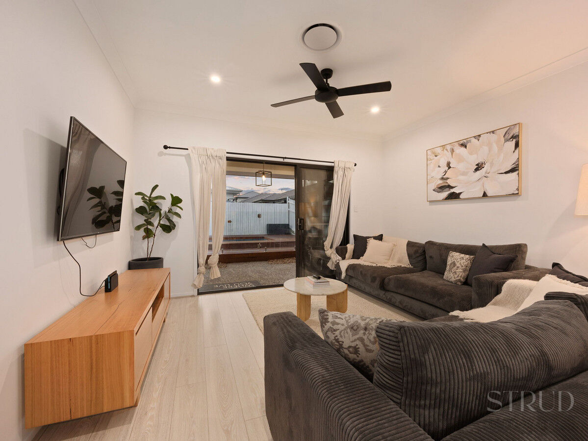 The home adapts to you. Ducted air conditioning keeps every space comfortable year-round, controlled effortlessly through smart technology. A separate media room adorned with plantation shutters offers a quiet escape for movie nights, downtime, or just a space to switch off from the day.