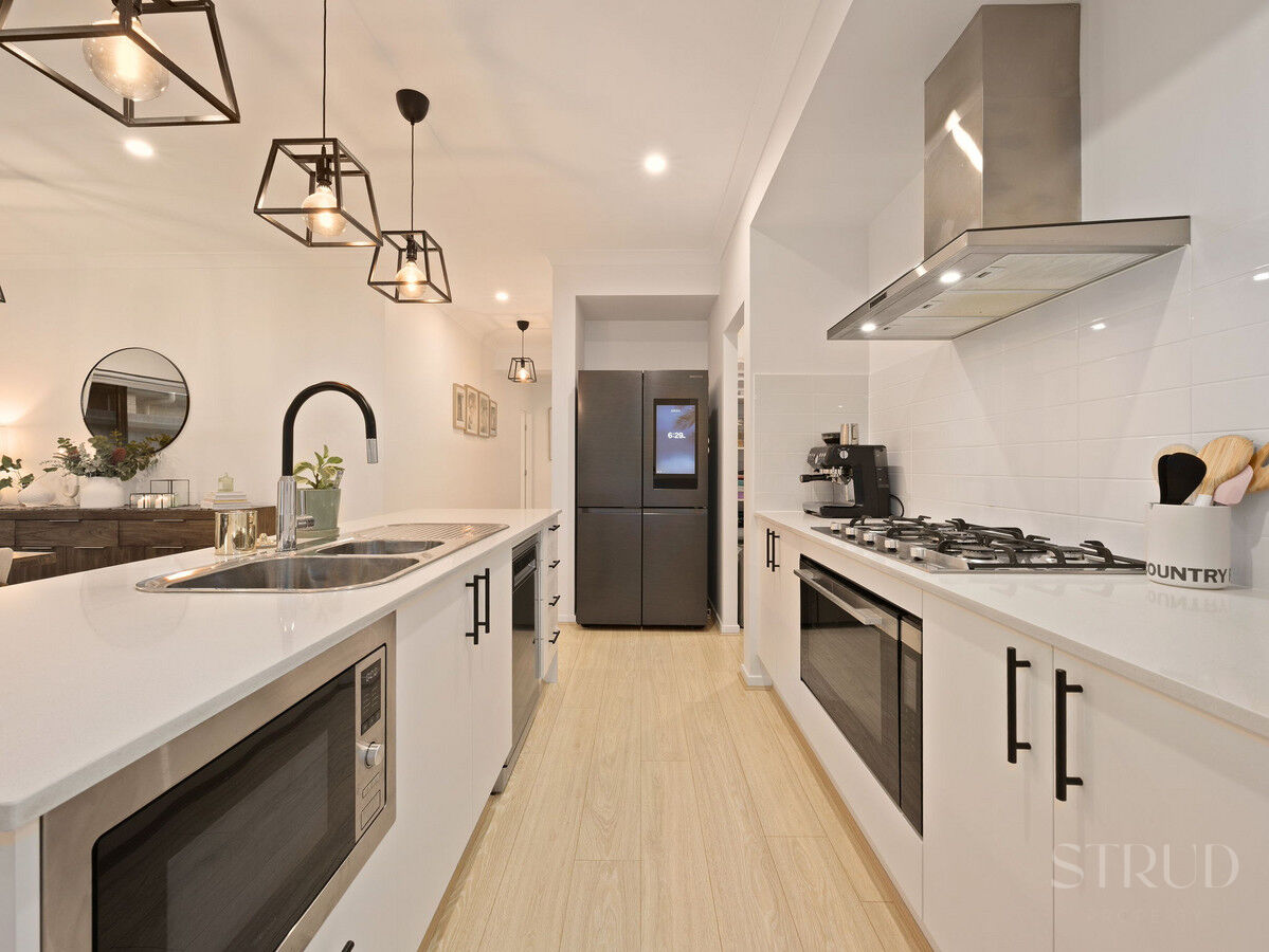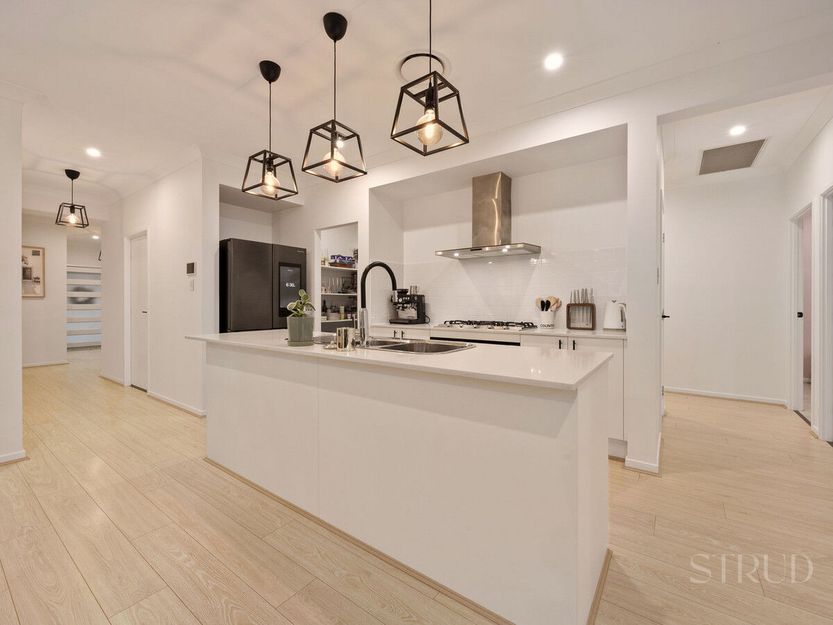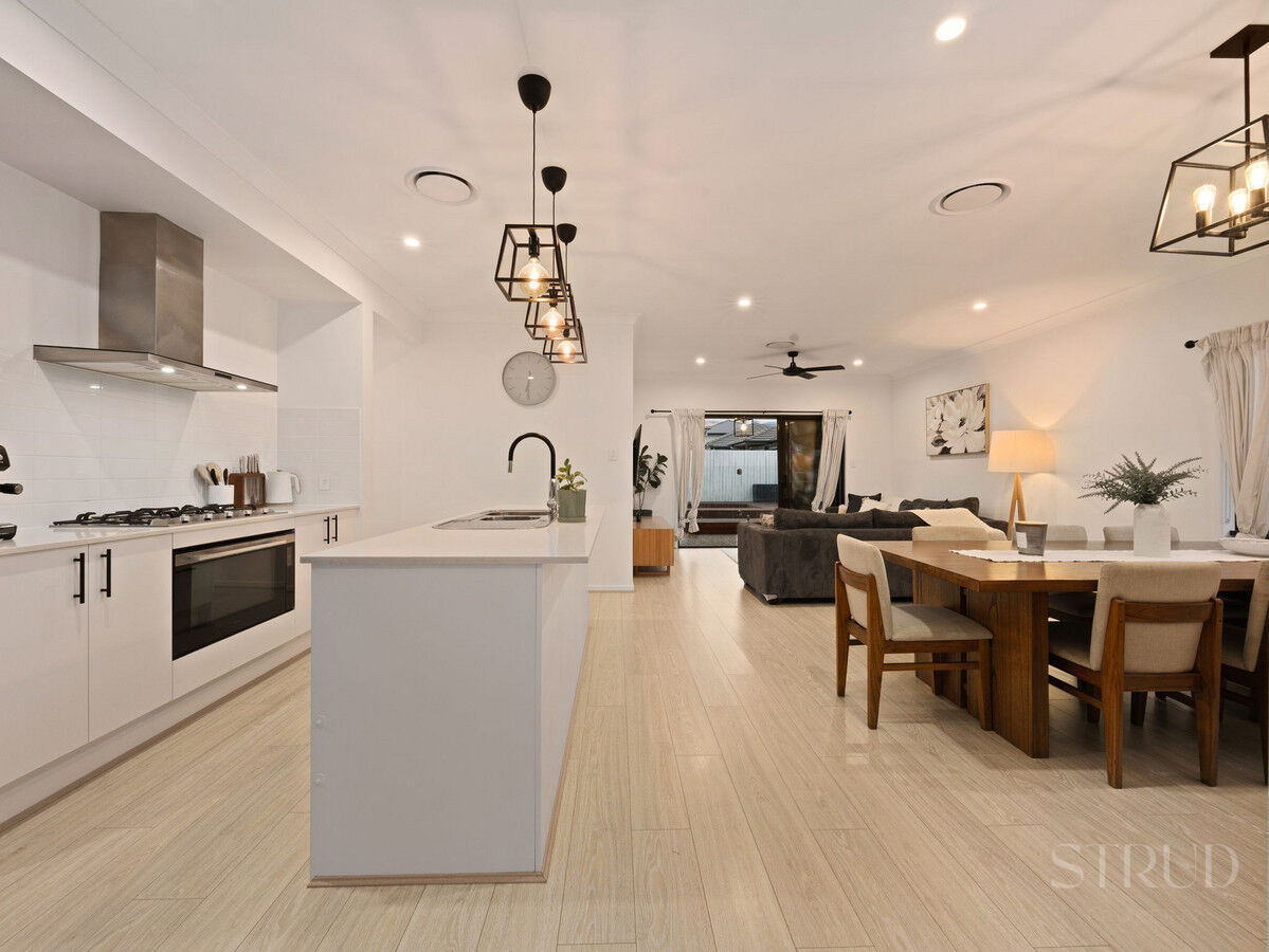 Step inside and there’s an immediate sense of calm. Light moves easily through the open living spaces, and the layout flows in a way that feels natural, not forced. The kitchen and living area sit at the center of the home — a place for slow mornings, busy afternoons, and relaxed evenings where life simply happens.