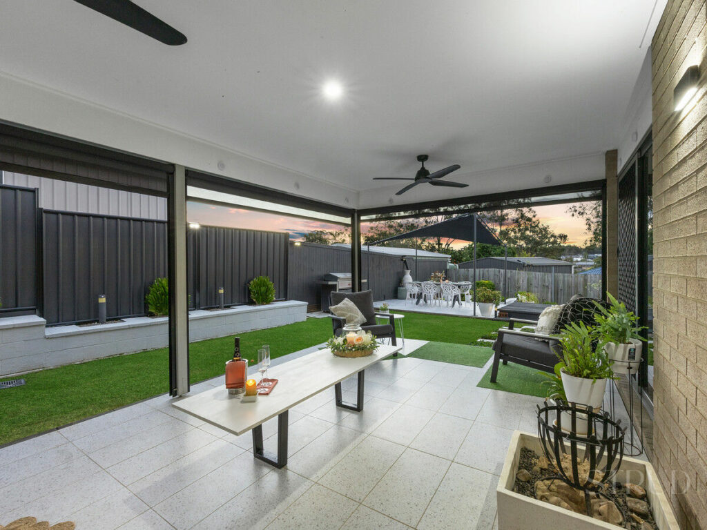 Hosting family gatherings is a delight in the large outdoor entertaining area, where there is complete privacy from the neighbours. The open-plan living spaces seamlessly connect the indoors to the outdoors, offering a perfect blend of comfort and style. The spacious kitchen, equipped with modern appliances and ample storage, flows effortlessly into the dining and living areas. Whether you’re preparing an easy Friday night meal, or hosting the extended family on Christmas, the open plan ensures you don’t miss a thing.