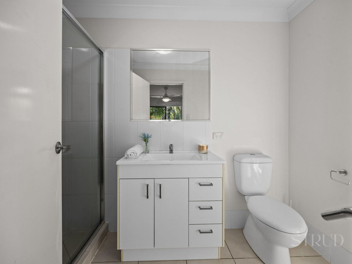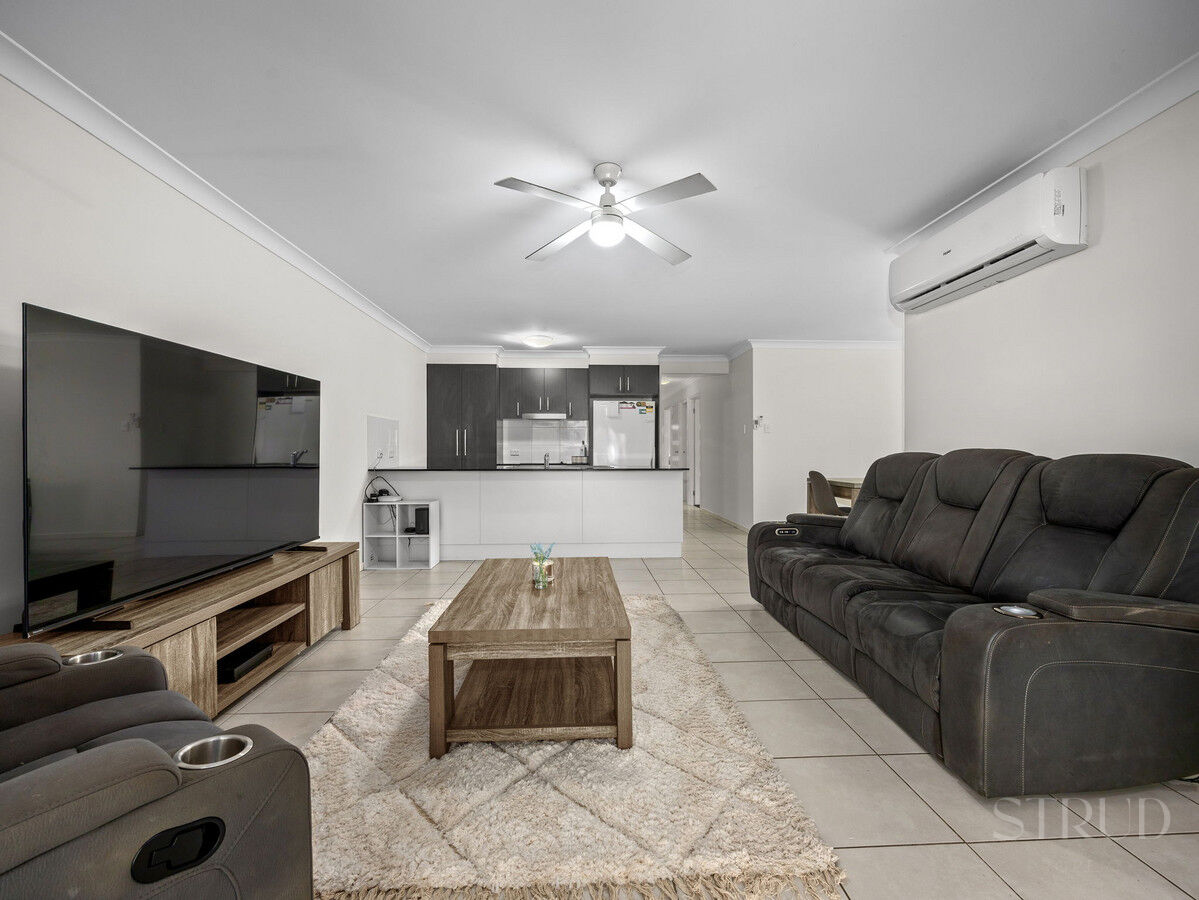 Accommodation includes three well-proportioned bedrooms, each fitted with built-in wardrobes and ceiling fans. The master bedroom enhances livability with a private ensuite and ample storage, while both bathrooms showcase clean, modern finishes designed for durability and ease of maintenance.