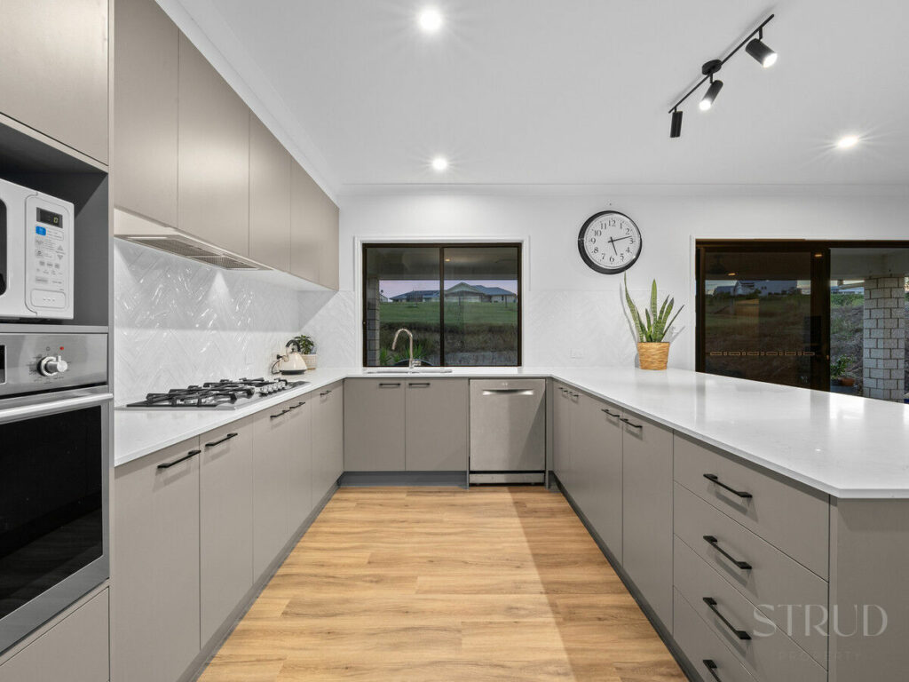 Discover a harmonious fusion of elegance and functionality. With zone-control ducted air conditioning, ceiling fans throughout and insulation installed in all internal and external walls, the afternoon breeze rolling off the country hills isn’t your only source of comfort. The spacious open-plan layout effortlessly connects living spaces, creating an inviting ambiance for both daily life and entertaining guests. A gourmet kitchen, overlooking the generous living areas, is a haven for culinary enthusiasts, while a separate media room offers a cozy retreat for movie nights or quiet relaxation.