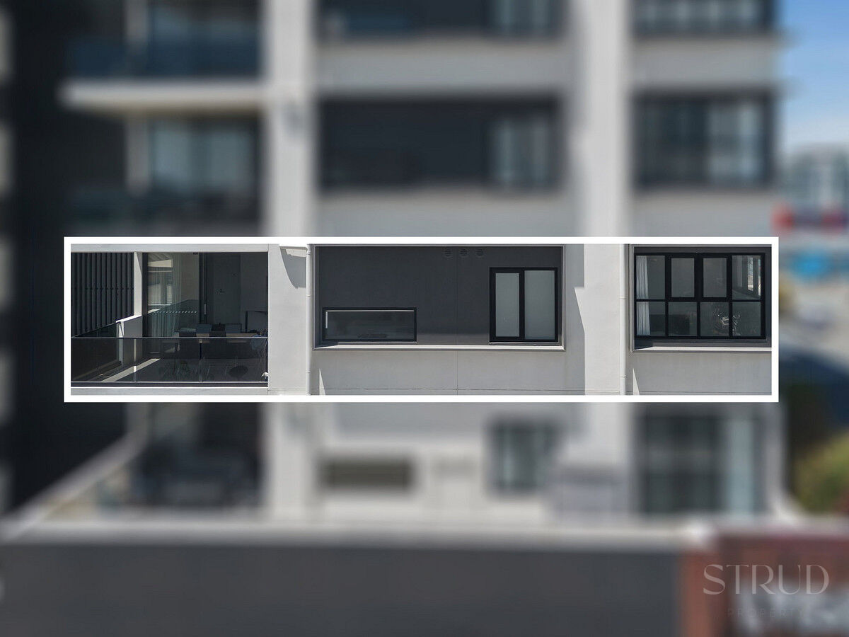 – Spacious balcony with full-height glass doors creating seamless indoor-outdoor living