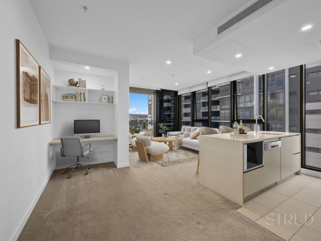 Beyond your apartment, the complex boasts an impressive range of resort-style amenities. Take a refreshing dip in the outdoor pool, stay active in the well-equipped gym, or unwind in one of the lush, landscaped gardens. The expansive rooftop terrace, complete with barbecue facilities, provides the perfect setting for entertaining guests while enjoying the dazzling city skyline. Step outside your door and explore an array of top-tier dining options, trendy cafés, and boutique shopping, all just a short stroll away. Commuting is effortless with Milton railway station only 100m from your doorstep, making travel a breeze, and Brisbane’s CBD is just a quick 7-minute drive.