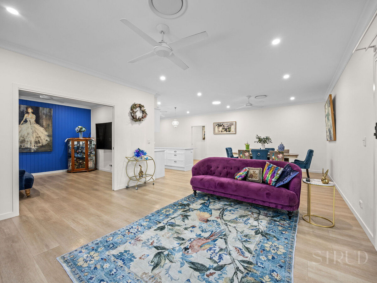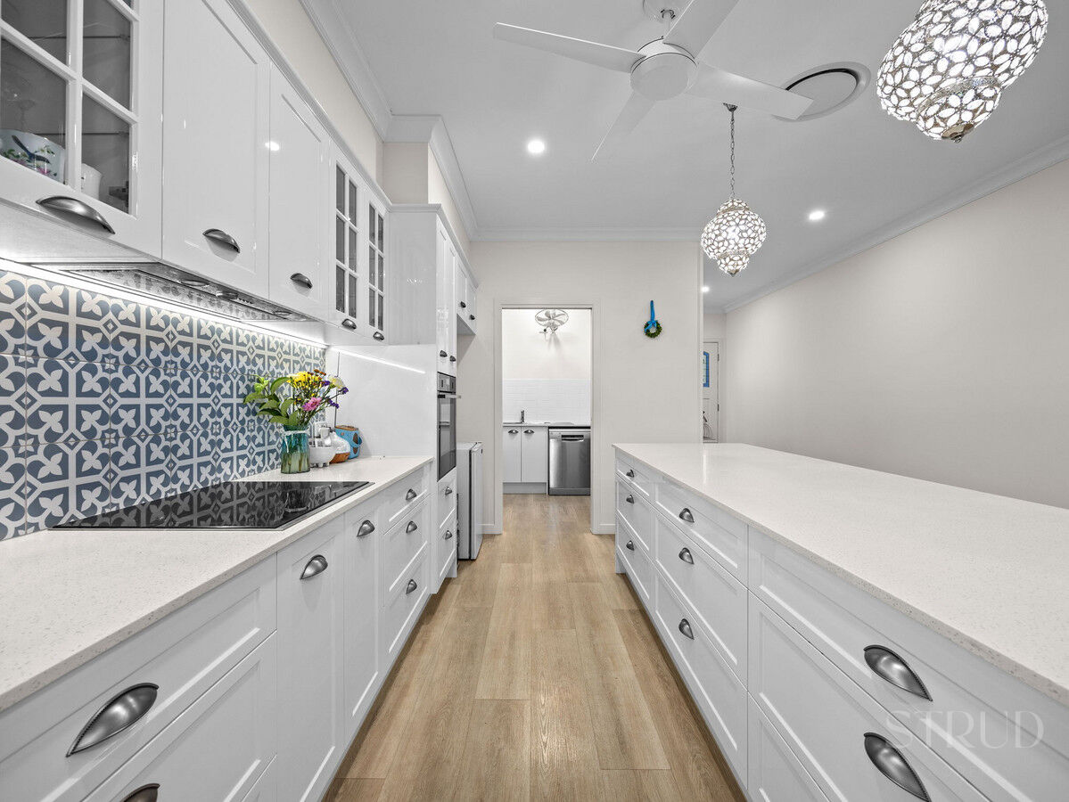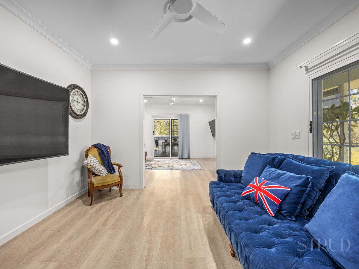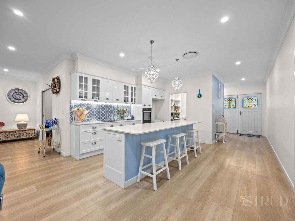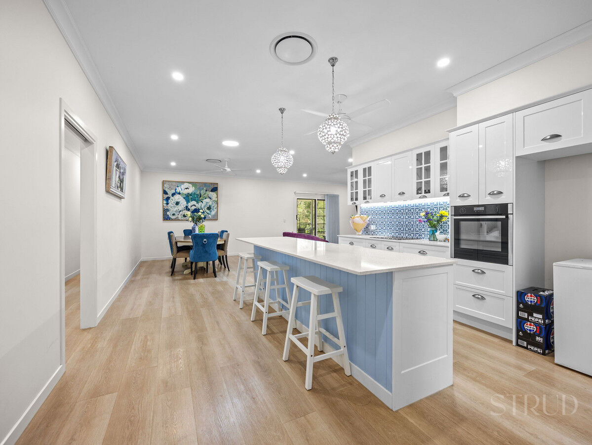 At the heart of the home, the kitchen is a standout. Finished with 20mm stone benchtops and complemented by a well-appointed butler’s pantry, it balances functionality with presentation and is perfectly positioned to service both the main living zones and outdoor entertaining areas. Open-plan living flows seamlessly to the rear deck, creating a relaxed indoor–outdoor connection ideal for entertaining or unwinding while taking in the outlook across the property.