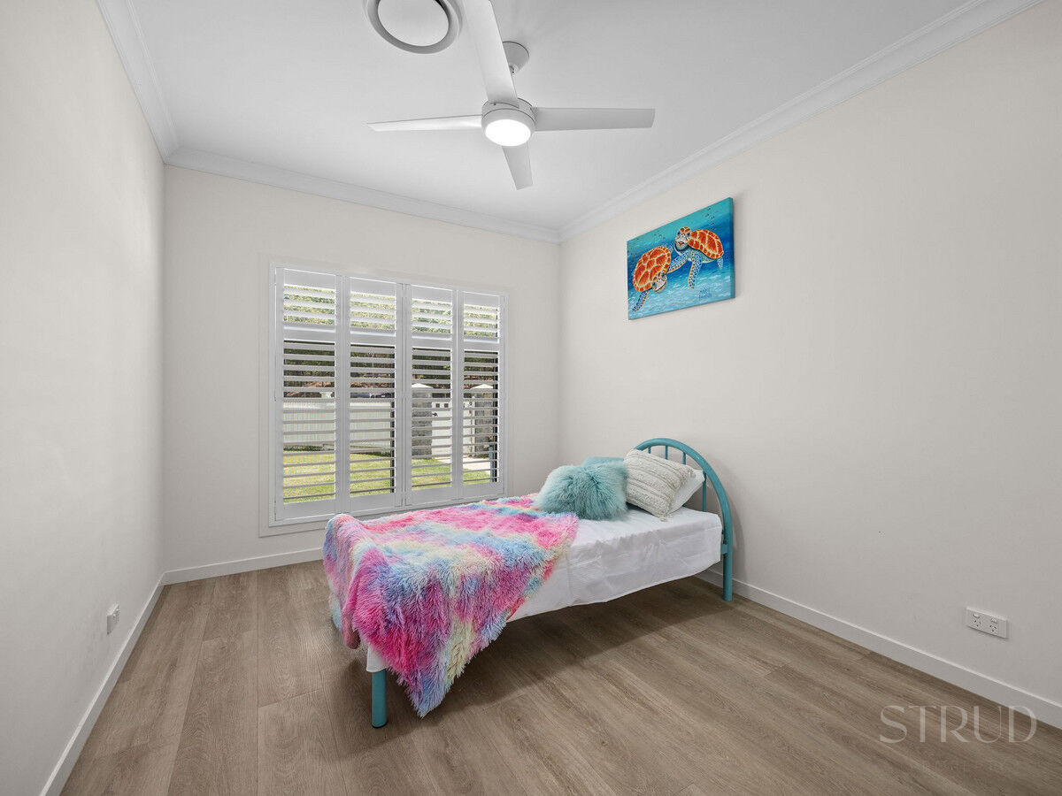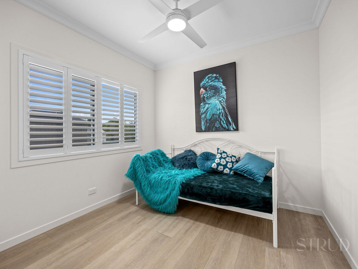 The home itself is generous in scale and intelligently designed, with hybrid flooring throughout and plantation shutters adding both durability and timeless appeal. Ducted air conditioning ensures year-round comfort, while ceiling fans and built-in robes feature in every bedroom, enhancing everyday liveability.