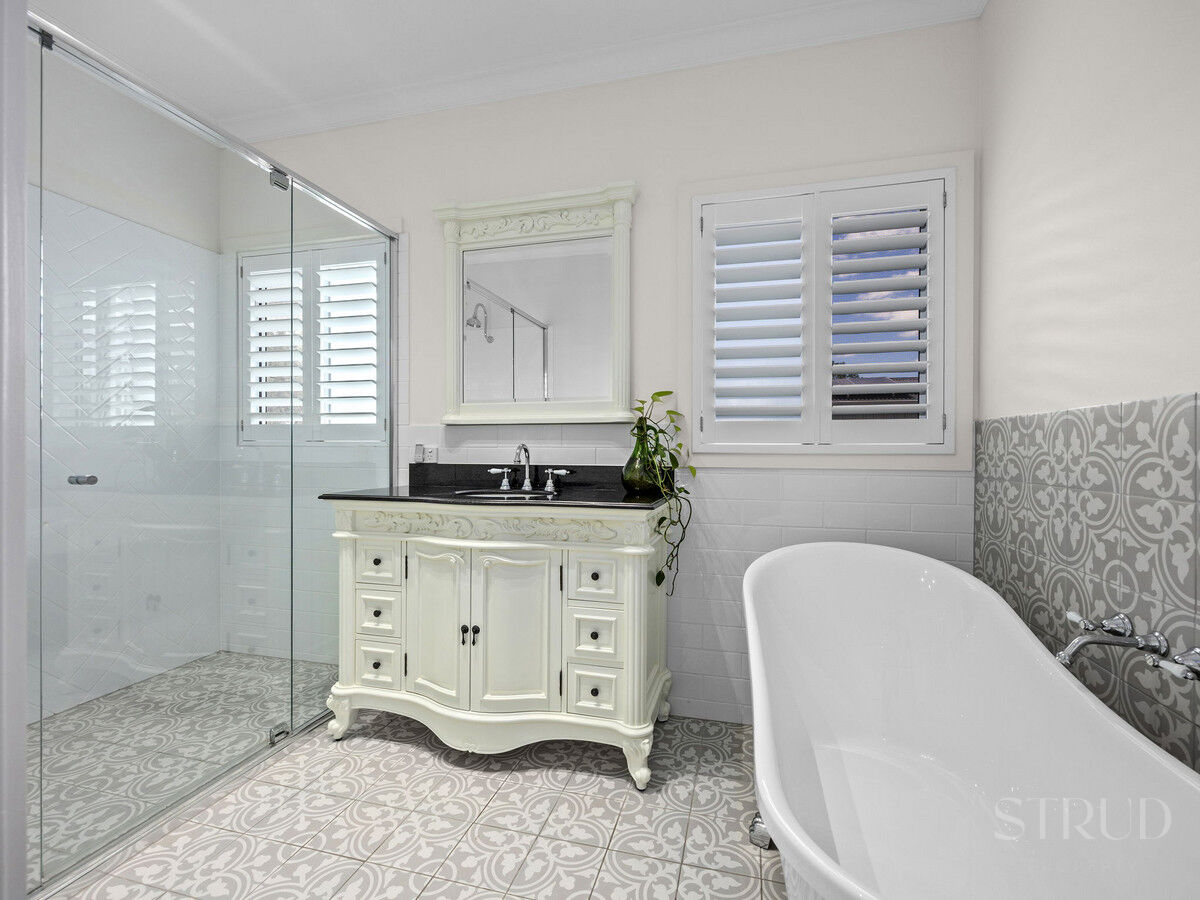 Accommodation is equally impressive. The master suite is positioned as a true retreat, featuring a walk-in robe and a luxurious ensuite complete with his and her sinks. The remaining bedrooms are well proportioned and serviced by a stylish central bathroom, maintaining both comfort and practicality.