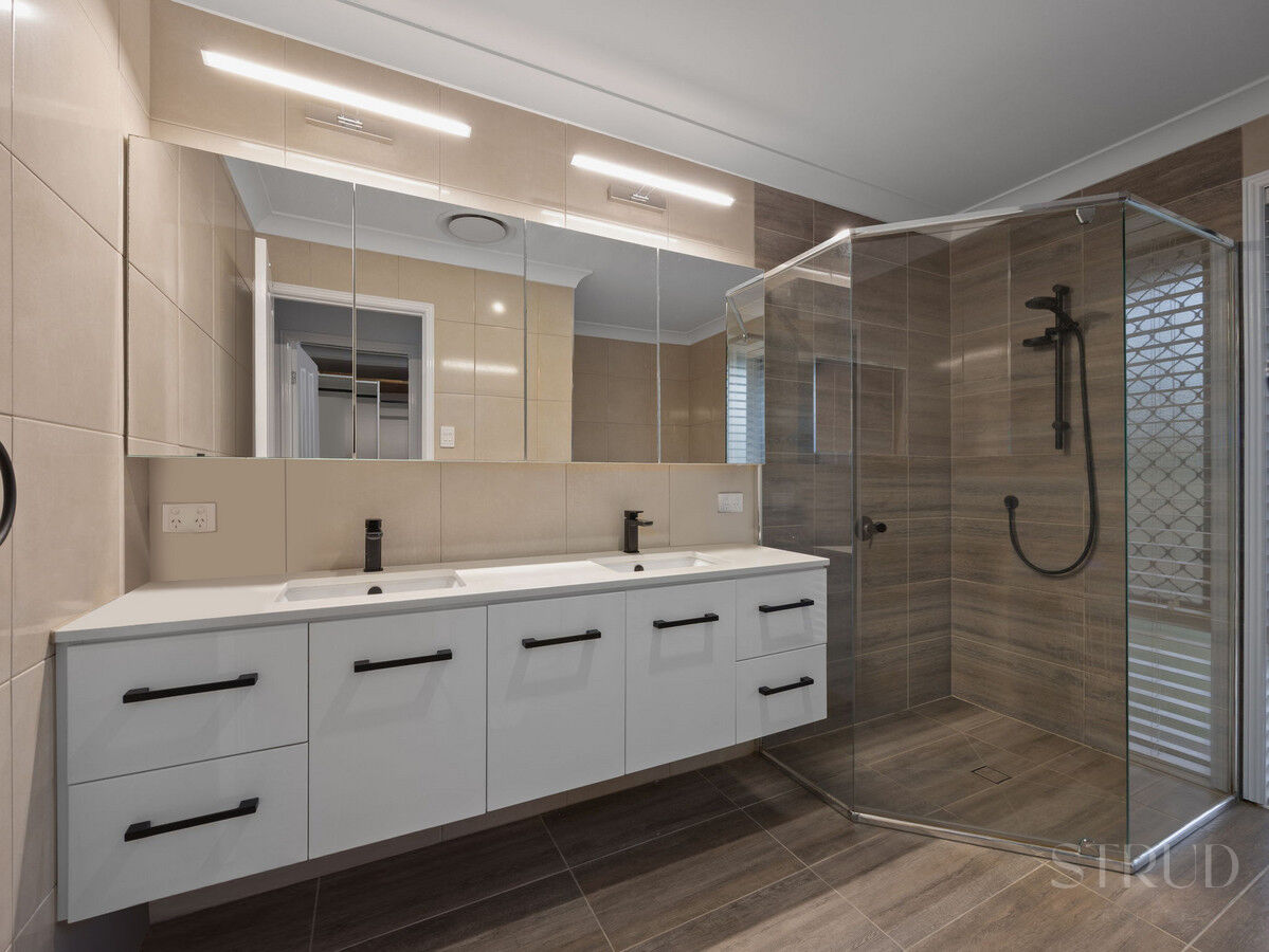 Accommodation is generous, with five bedrooms thoughtfully spread across the home. Each bedroom is fitted with built-in robes and ceiling fans, ensuring comfort and functionality for every family member. The master suite is privately positioned and has been tastefully upgraded, featuring a renovated ensuite with modern finishes and a walk-in robe that offers excellent storage and day-to-day ease. The main bathroom services the remaining bedrooms and includes a separate bath, perfect for families with young children.