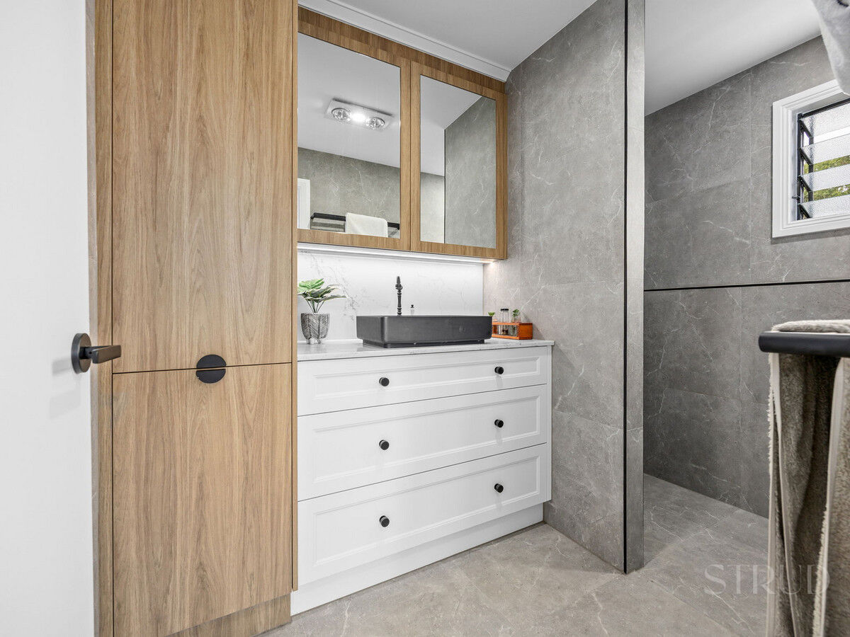 The beautifully renovated bathroom has been finished with modern fittings and a fresh, contemporary style, giving it that WOW factor. Designed with both practicality and comfort in mind, it services the home effortlessly and complements the overall quality of the renovation throughout.