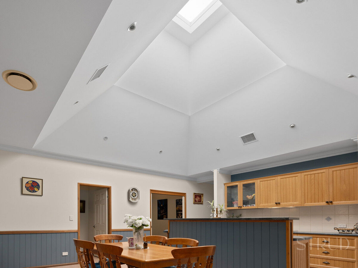 The showstopper appears the moment you step inside. A dramatic, oversized skylight rises above the kitchen and dining space, drenching the heart of the home in natural light. Morning to afternoon, the space glows, shifting subtly with the sun and sky. It isn’t just a design feature. It is the centrepiece of the home’s personality, an everyday luxury that elevates the living experience in a way photos can barely capture.