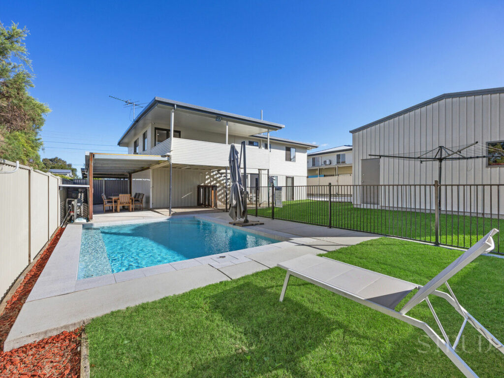 The lower level features a large rumpus room with its own bathroom, offering versatility and additional living space. It has also been left unrenovated for you to add your own personal touches. Step outside to discover a large 3-bay powered shed complete with a hoist and mezzanine, providing ample storage or workspace. The near-new 6mx4m saltwater pool is perfect for cooling off on hot days and features provisions for heating. Generous side access makes it easy to reach the shed and pool area.