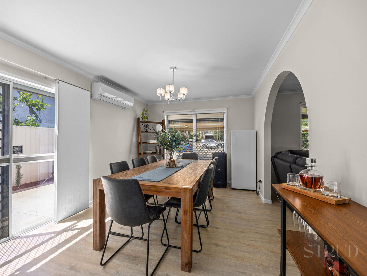 The central living and dining area forms the heart of the home, creating a warm and connected space for family time or casual gatherings. The kitchen sits neatly alongside, allowing you to stay engaged while preparing meals or hosting guests. With stainless steel appliances including a dishwasher and oven, along with good bench space and storage, it balances practicality with a clean, modern feel.