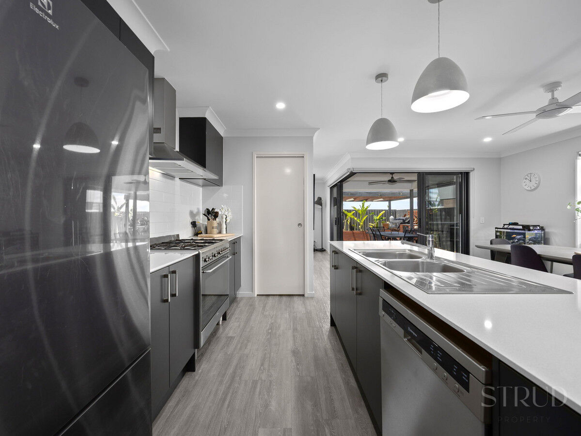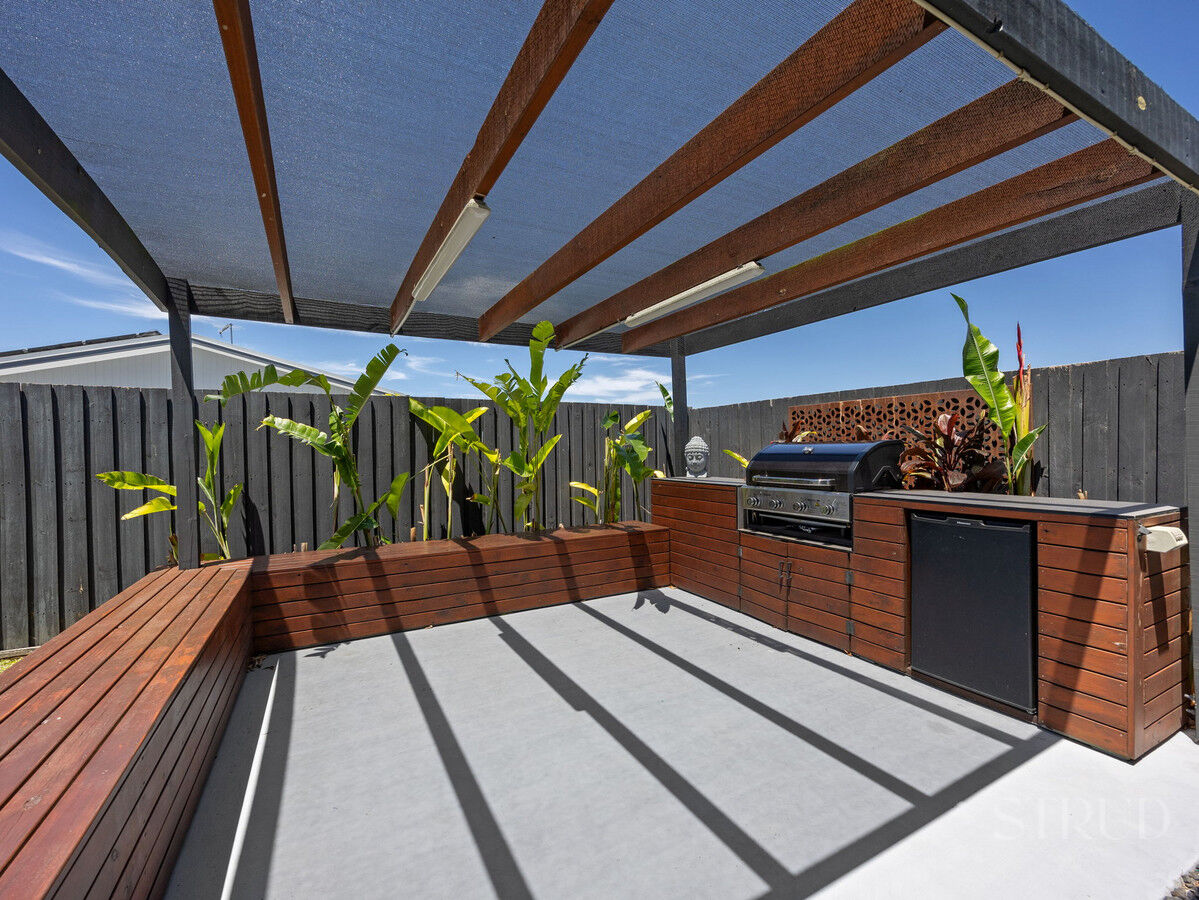 The heart of the home is the open-plan kitchen, living and dining space – complete with split-system air conditioning – designed for everyday living and effortless entertaining. The modern kitchen is a standout feature, boasting a gas cooktop, quality appliances, and ample storage, making it a dream for any home chef. Seamlessly flowing from here is the show-stopping outdoor entertaining area, featuring a built-in BBQ and alfresco space perfect for family gatherings, summer BBQs and weekend catch-ups with friends.