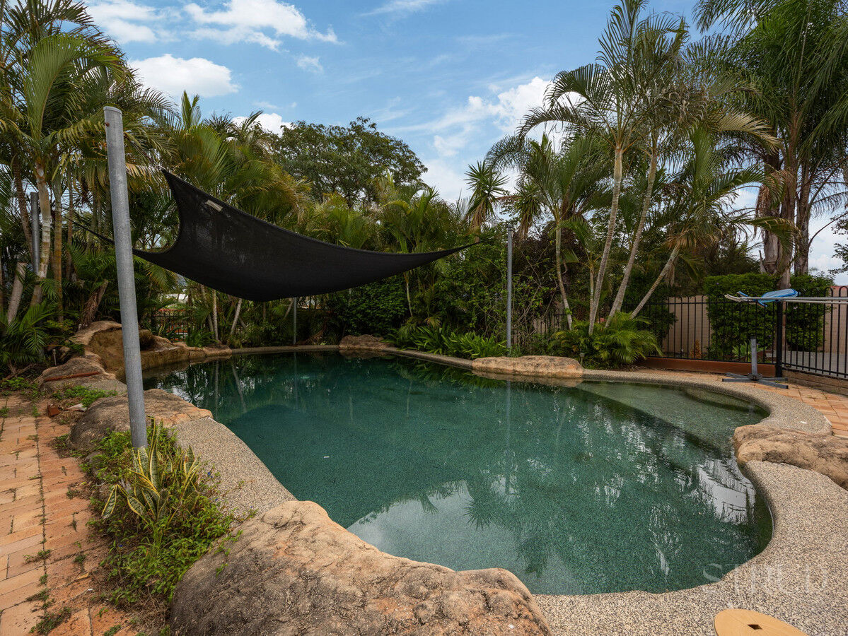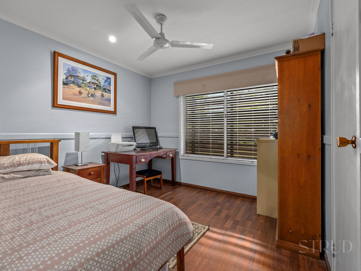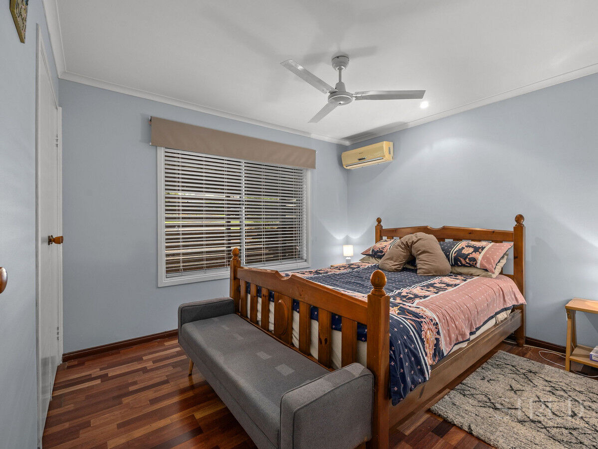 The home includes a dedicated laundry with an additional toilet, as well as a central bathroom complete with a shower and bathtub. The master bedroom features timber flooring, a built-in wardrobe area, and is fitted with air conditioning and a ceiling fan. The remaining bedrooms are generously sized, all featuring built-in wardrobes, with one offering air conditioning, while the others is fitted with ceiling fans. Step outside to a spacious alfresco area, perfect for entertaining, with ample room for a BBQ and outdoor dining. The backyard continues to impress, featuring a large 9m x 3.5m shed, an additional garden shed, and a stunning saltwater pool, all set amongst a peaceful, private garden setting. With generous yard space for kids and pets to run and play, this home delivers the perfect balance of space, comfort, and lifestyle, truly ticking all the boxes.