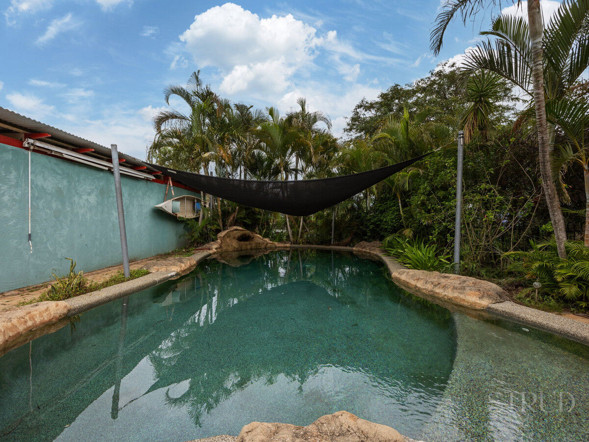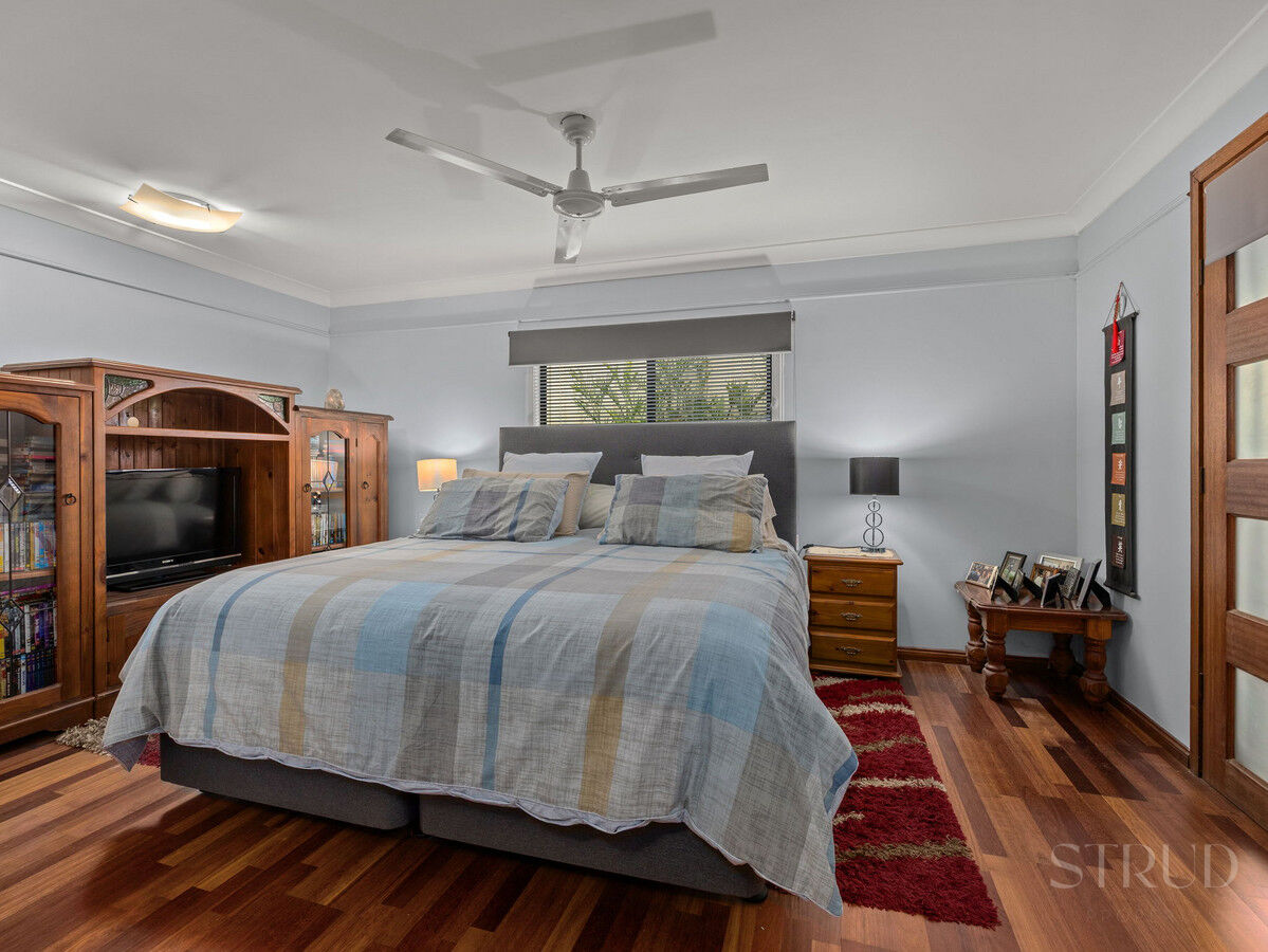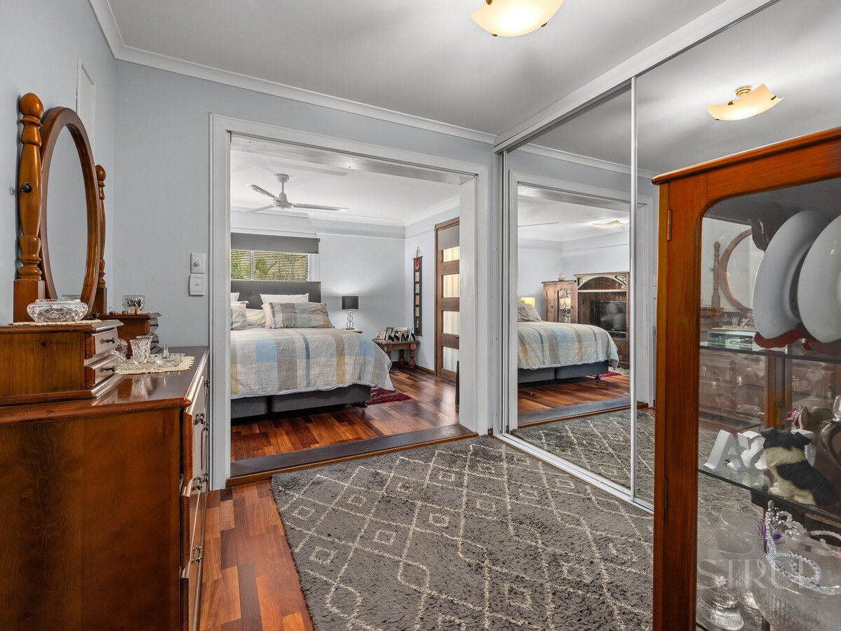 The home includes a dedicated laundry with an additional toilet, as well as a central bathroom complete with a shower and bathtub. The master bedroom features timber flooring, a built-in wardrobe area, and is fitted with air conditioning and a ceiling fan. The remaining bedrooms are generously sized, all featuring built-in wardrobes, with one offering air conditioning, while the others is fitted with ceiling fans. Step outside to a spacious alfresco area, perfect for entertaining, with ample room for a BBQ and outdoor dining. The backyard continues to impress, featuring a large 9m x 3.5m shed, an additional garden shed, and a stunning saltwater pool, all set amongst a peaceful, private garden setting. With generous yard space for kids and pets to run and play, this home delivers the perfect balance of space, comfort, and lifestyle, truly ticking all the boxes.
