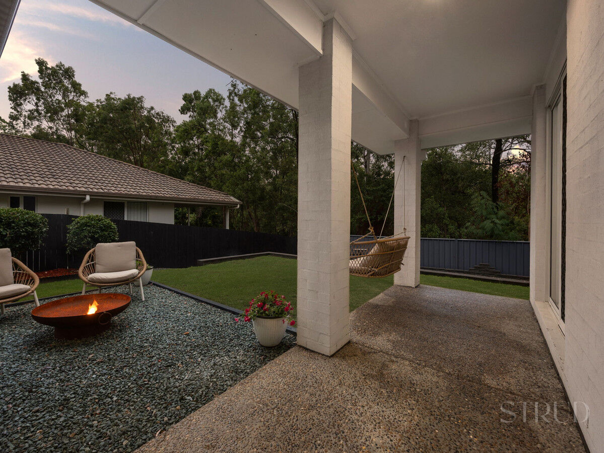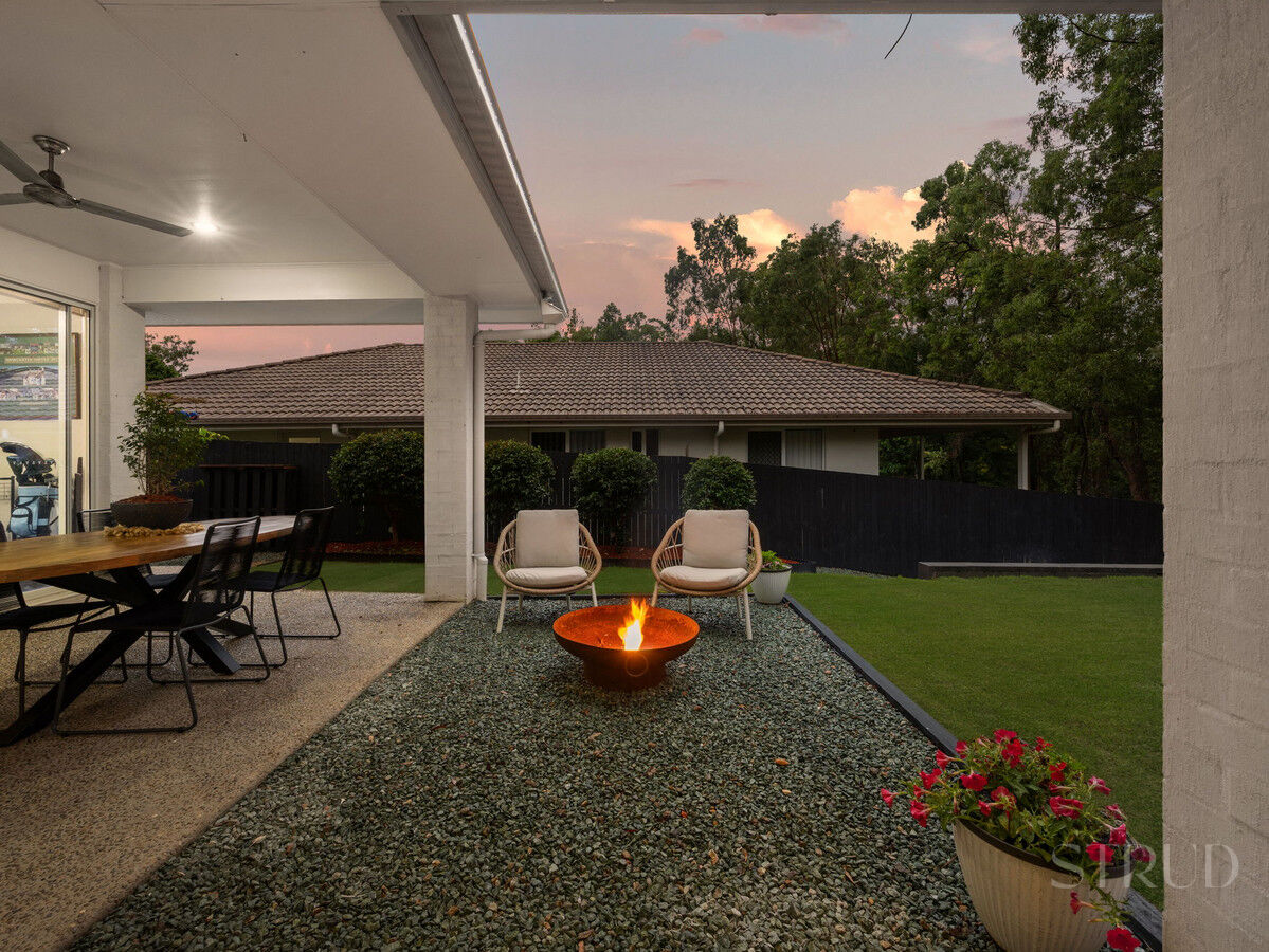 Outdoors, dual covered alfresco zones extend the internal footprint and amplify the home’s entertaining capability. The expansive, fully fenced backyard is framed by established landscaping and an uninterrupted bushland backdrop, delivering a rare sense of space, separation and tranquillity seldom achieved within estate living.