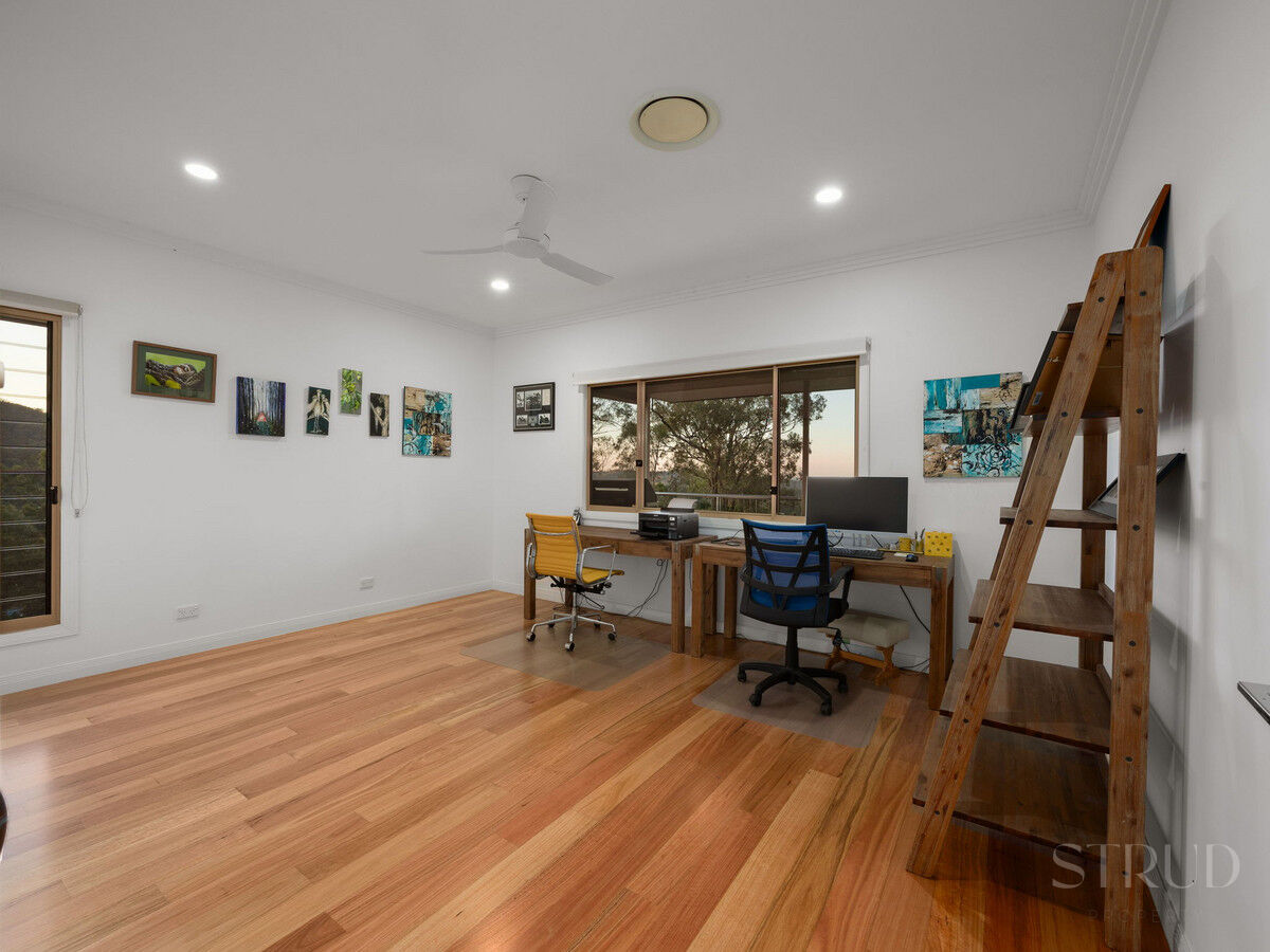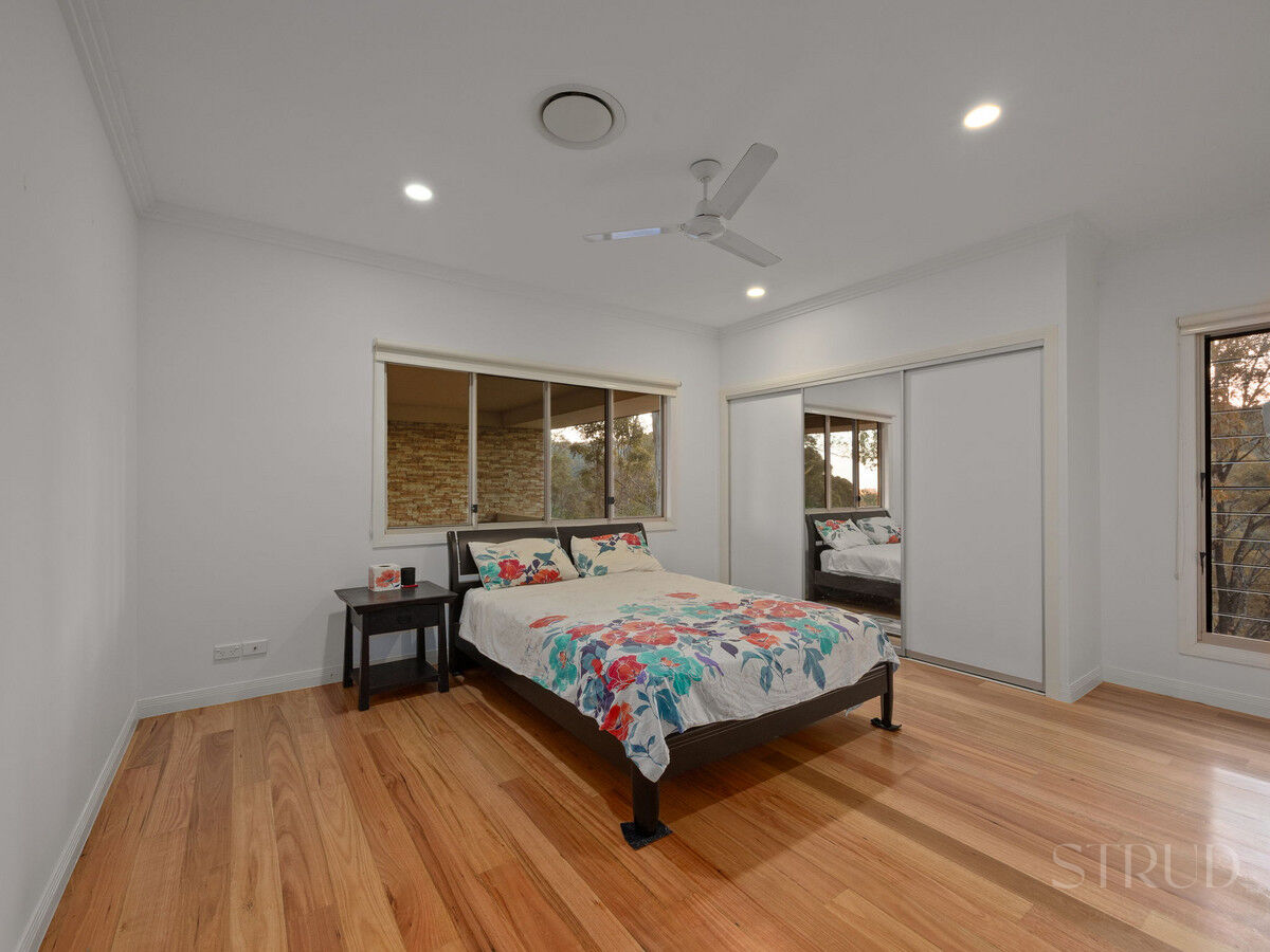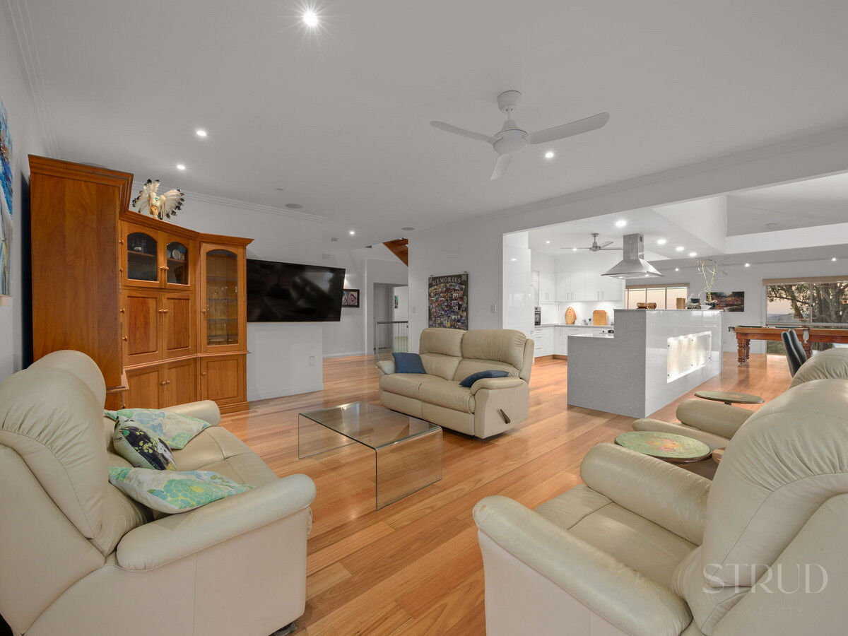 From the moment you arrive, the home makes a statement. Its striking design, expansive proportions, and abundance of glass ensure every room is filled with natural light and sweeping vistas that stretch from the hinterland across to the Gold Coast skyline. Polished hardwood floors and soaring voids create an immediate sense of scale and warmth, setting the tone for what is an exceptional family home.