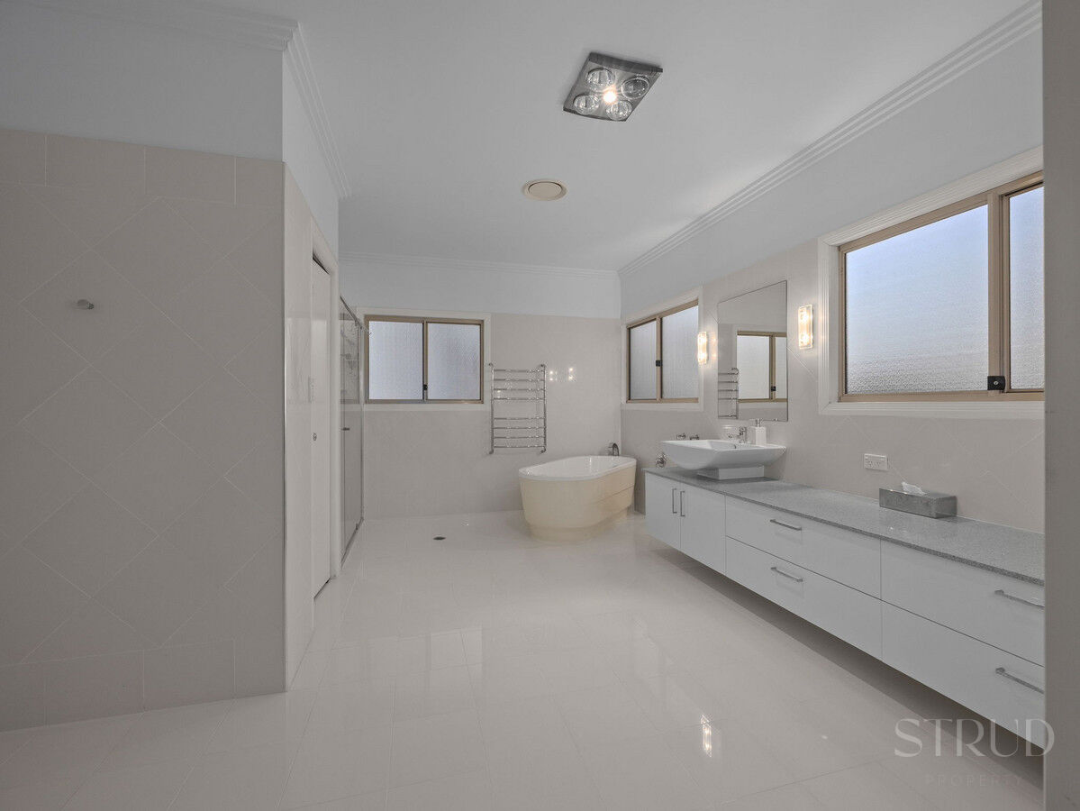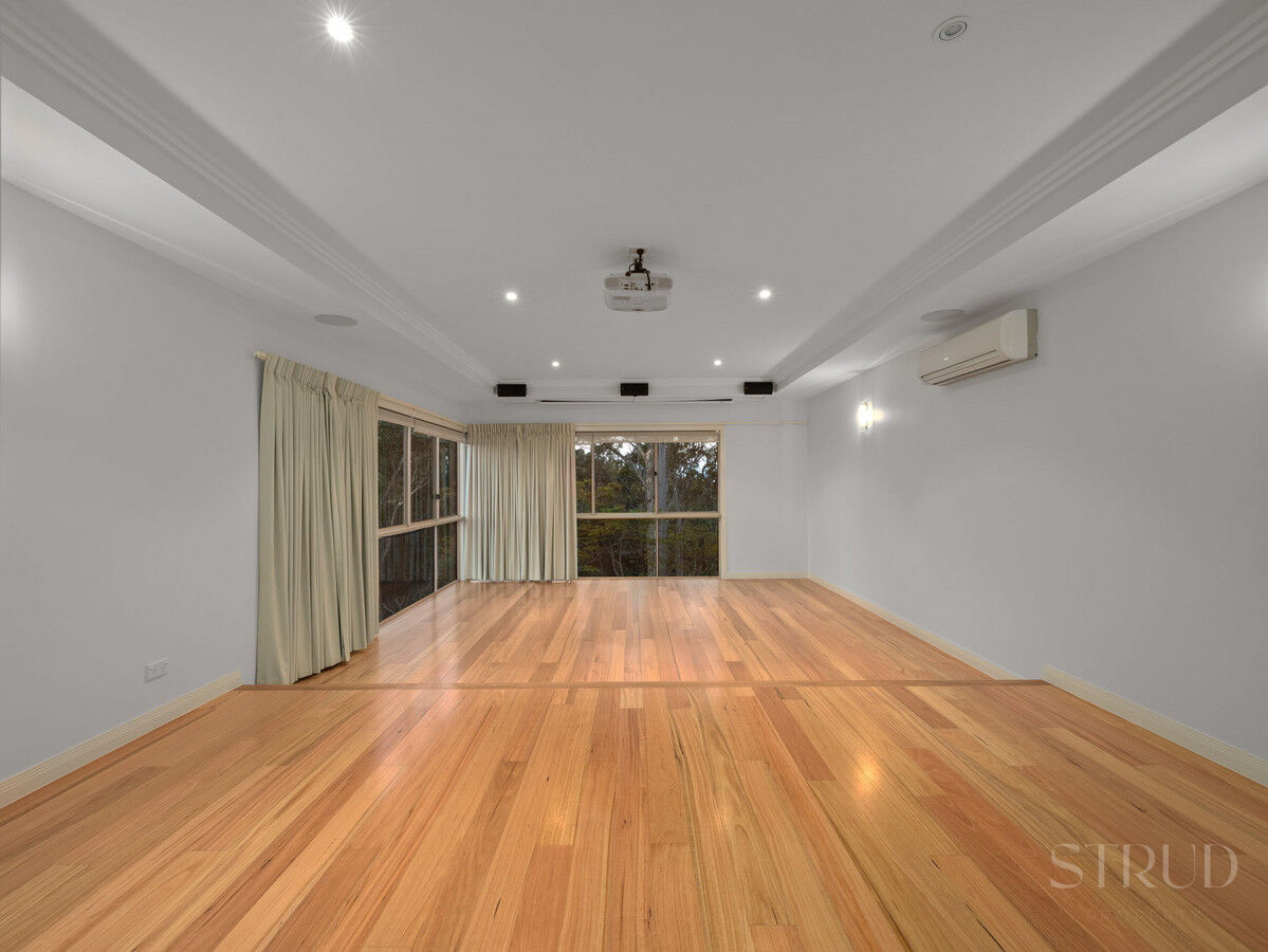 Designed for the modern family, the layout offers outstanding functionality and separation. Across three levels, you’ll find five generously sized bedrooms plus a dedicated study, all serviced by three stylish bathrooms. The master retreat occupies its own private space, featuring a walk-in robe and elegant ensuite. Downstairs, the purpose-built cinema delivers the full theatre experience, serviced by a separate toilet within the laundry for convenience.