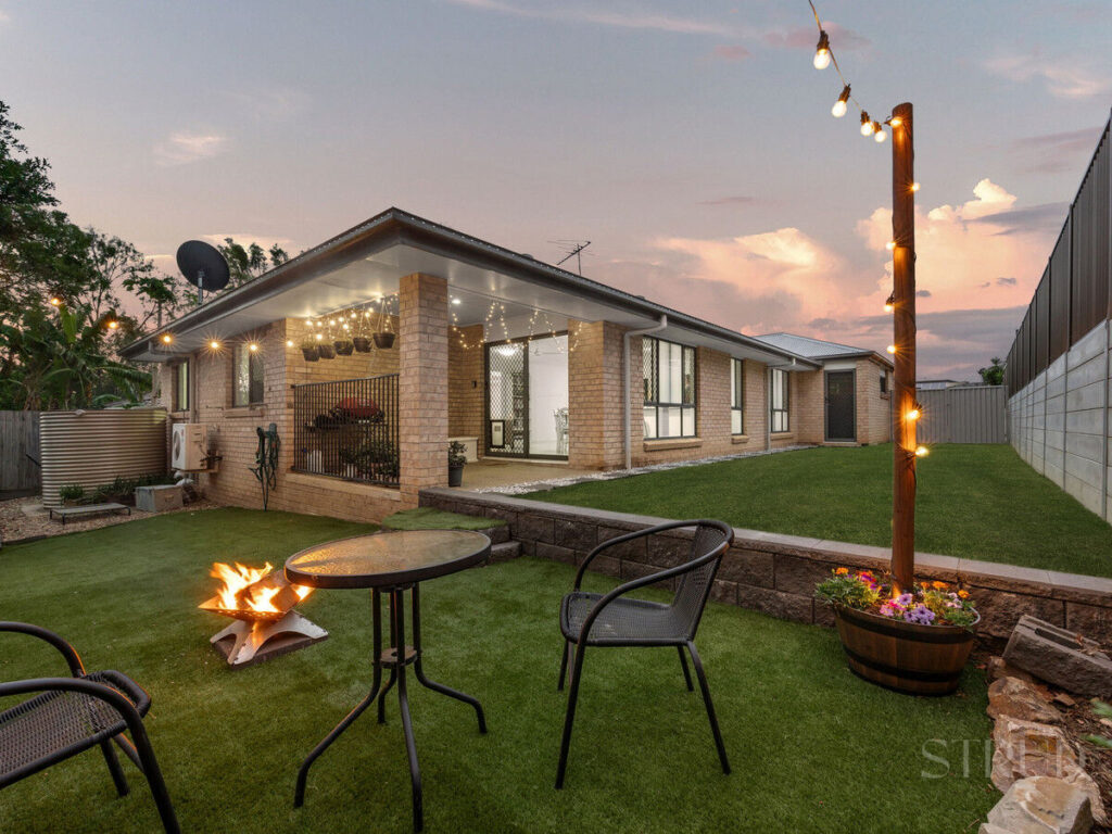 Out the back, the outdoor entertaining area comes alive in the evenings. Turn on the fairy lights, spark up the fire pit, and unwind together – it’s a backyard set up for easy family enjoyment.