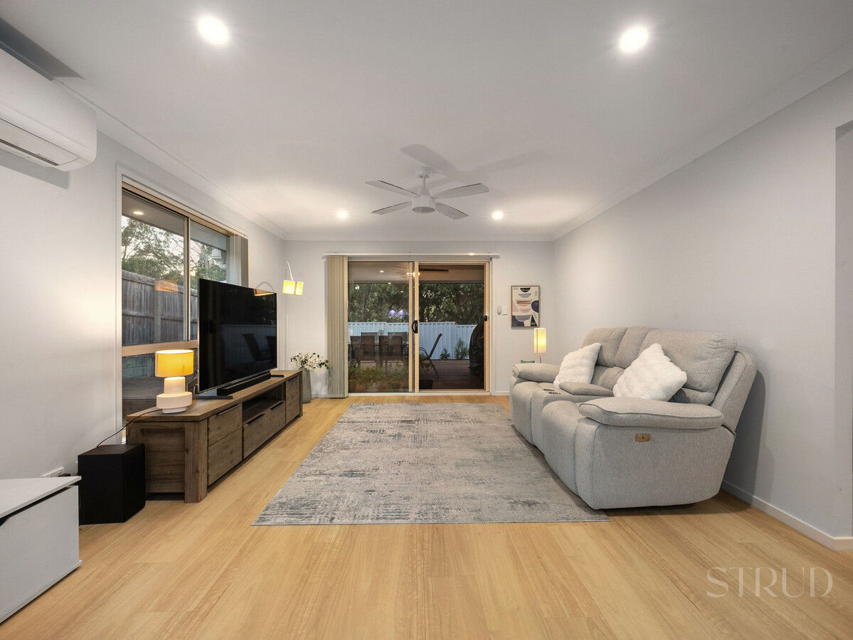 Inside, a seamless open-plan living and dining zone forms the heart of the home, enhanced by new hybrid timber flooring that flows throughout and creates a fresh, contemporary feel. Natural light fills the central living domain, while air-conditioning and ceiling fans ensure year-round comfort. The layout has been thoughtfully designed to maximise both space and functionality, providing a versatile environment suited to everyday living, entertaining or relaxed family time.