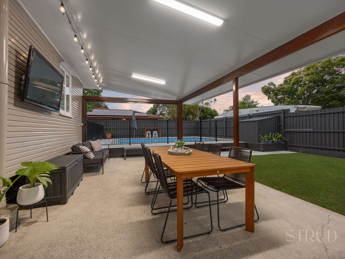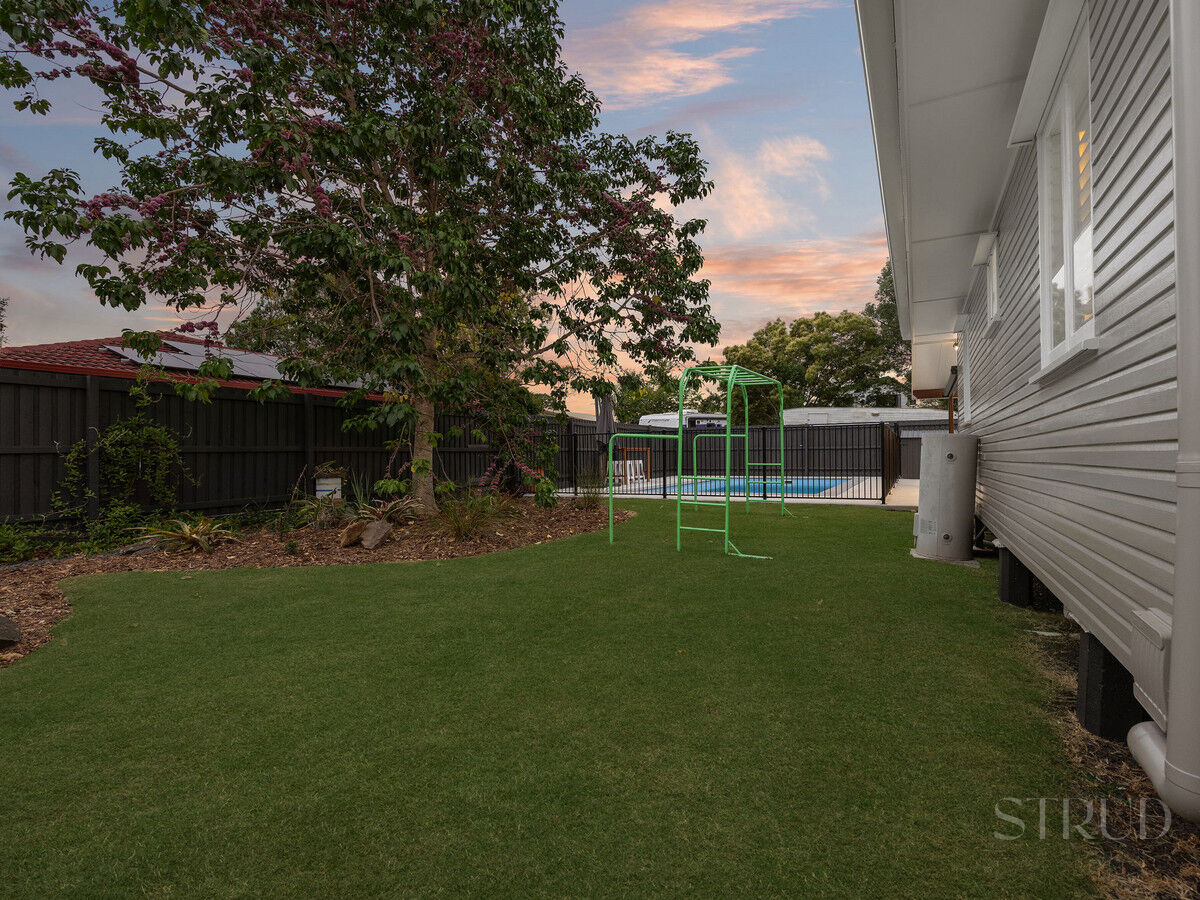 Outdoors, the fully fenced yard provides plenty of space for children and pets, while side access allows room for cars, a caravan, boat or additional toys. A generous garden shed offers excellent storage for tools and equipment. The covered outdoor entertaining area is a true highlight, perfect for hosting friends, enjoying weekend sport or spending quality time with family. Completing the package is a swimming pool, ideal for cooling off during Queensland’s warmer months.