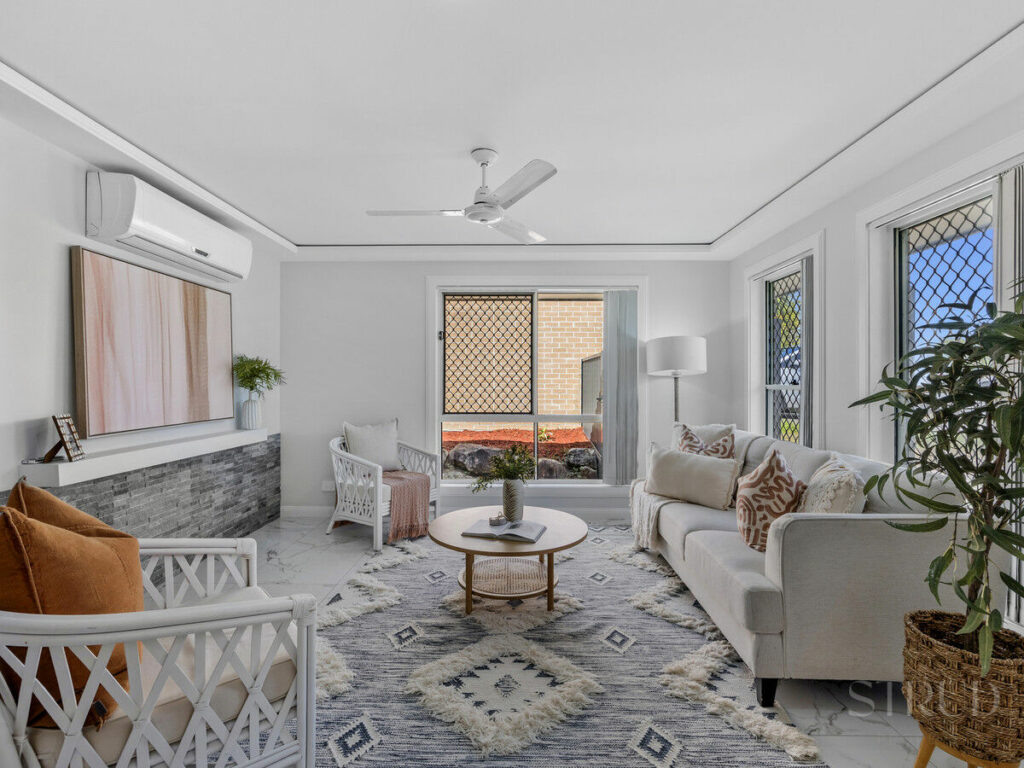Newly painted walls throughout and recently carpeted bedrooms provide a fresh and inviting atmosphere. The living areas, adorned with 6×6 tile flooring, include a bulkhead ceiling—a perfect canvas for optional LED lighting enhancements, adding a touch of elegance. Comfort is prioritised with a split system air conditioning unit, ensuring a pleasant environment all year round.