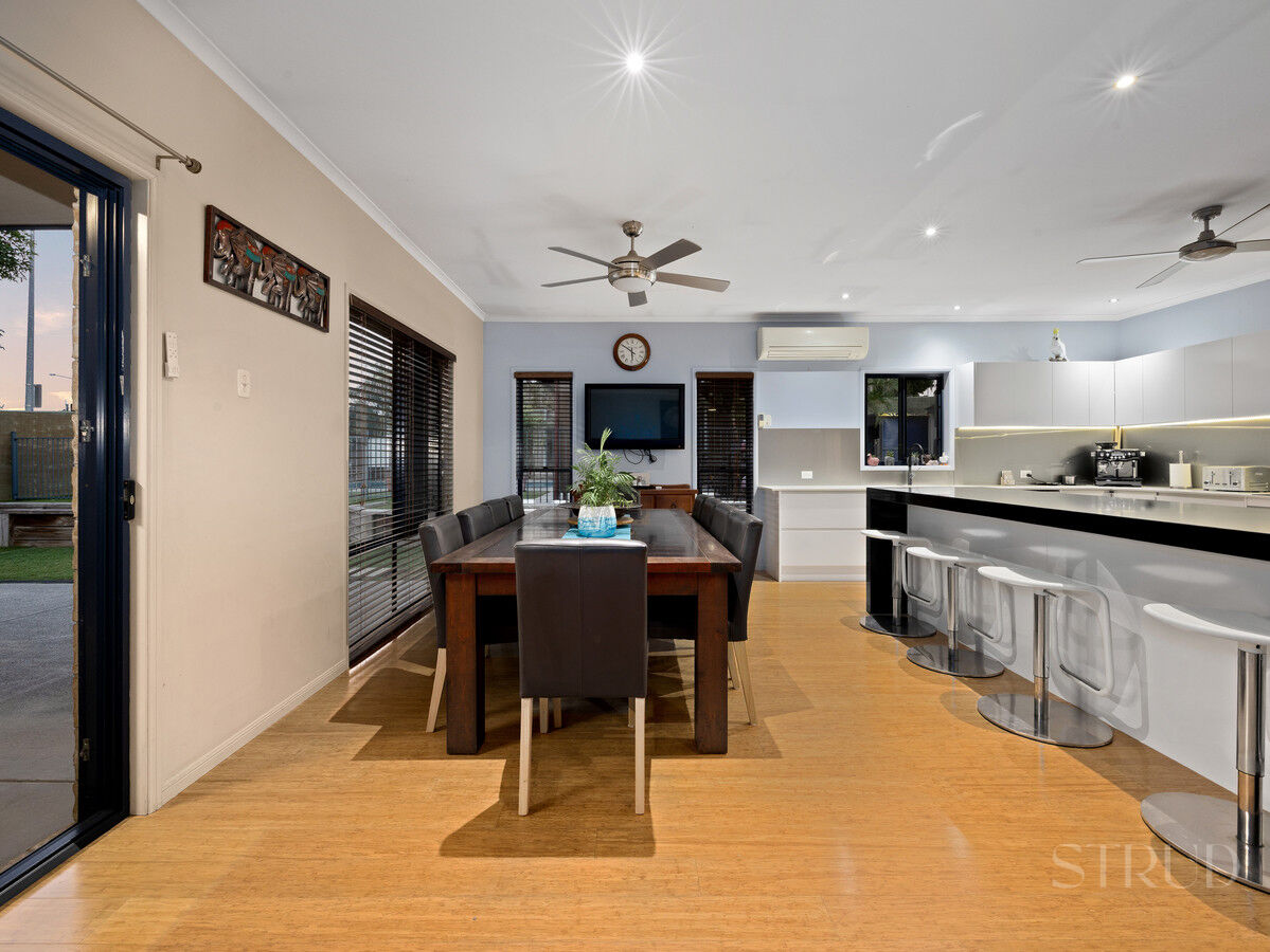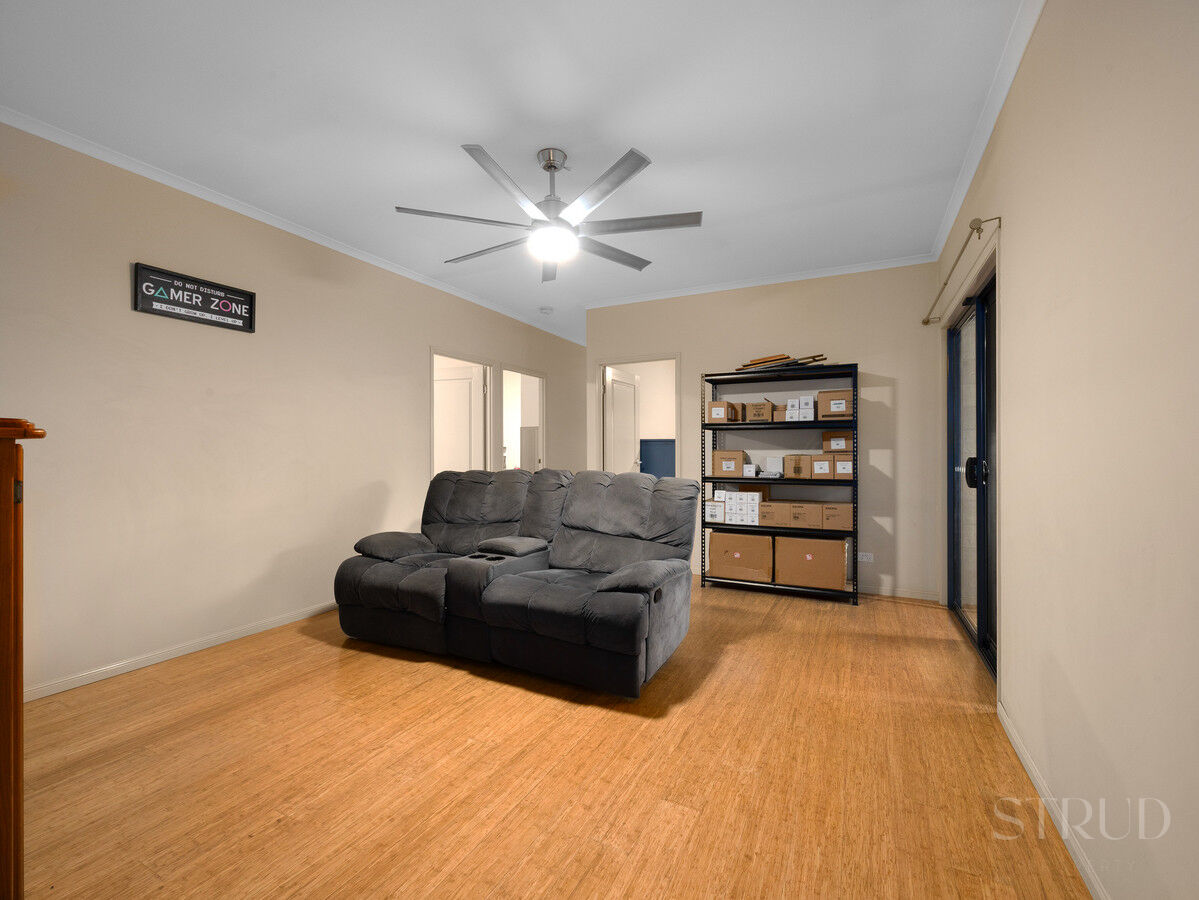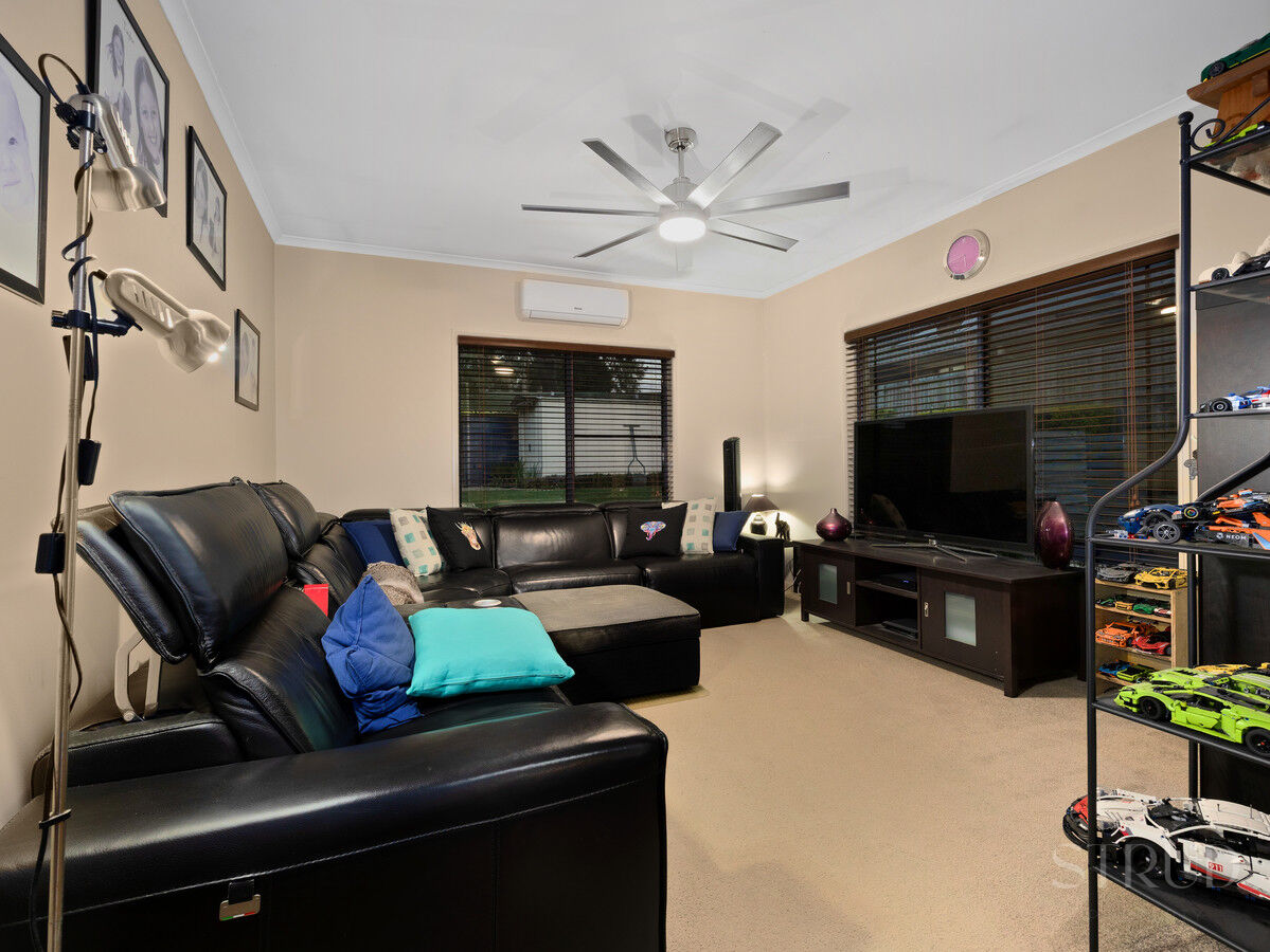 Practicality and climate control have been thoughtfully addressed, with air conditioning in the main living, dining, master bedroom, and garage, ensuring the home remains a cool haven during the Queensland summer. These comforts are supported by sustainable upgrades, including a solar hot water system and a 3kW solar array that ensure the home remains efficient year-round.