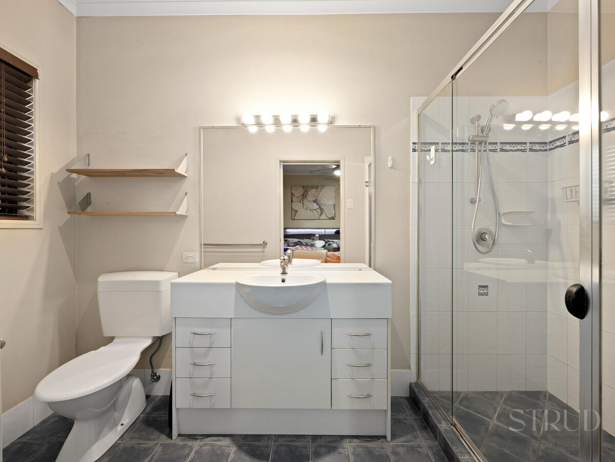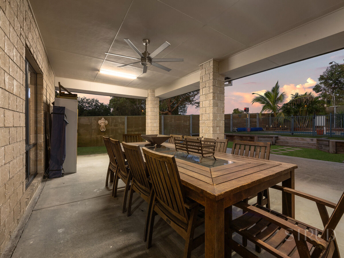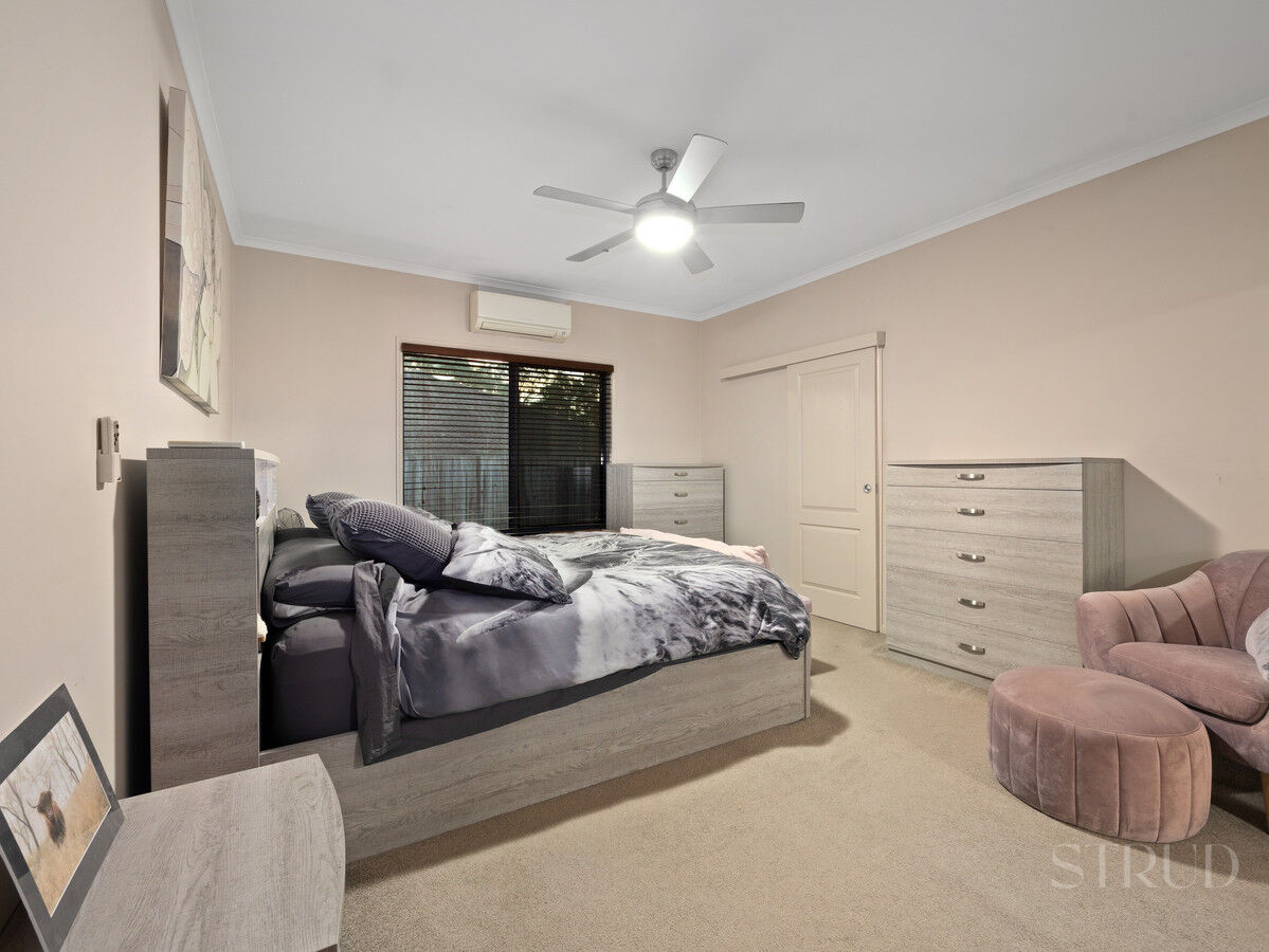 Practicality and climate control have been thoughtfully addressed, with air conditioning in the main living, dining, master bedroom, and garage, ensuring the home remains a cool haven during the Queensland summer. These comforts are supported by sustainable upgrades, including a solar hot water system and a 3kW solar array that ensure the home remains efficient year-round.