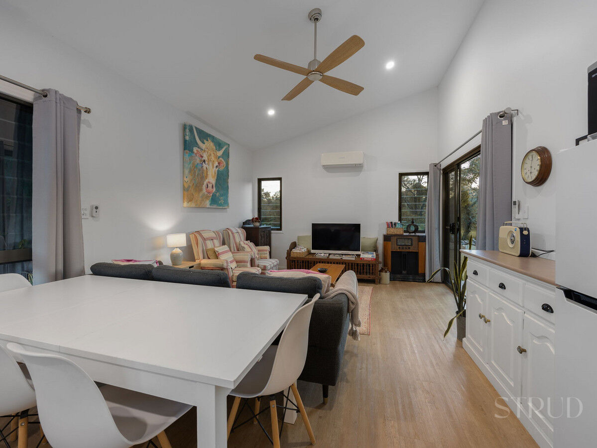 At the heart of the home is a beautifully appointed kitchen featuring a Smeg oven, walk in pantry, and seamless flow to the dining and living zones. A separate living area with its own kitchenette provides flexibility for guests, teenagers, or extended family. The elegant bathroom includes a cast iron clawfoot bath, while the master suite offers a private retreat with its own ensuite. Step out to the 6x3m rear deck, the ideal vantage point to take in the tranquillity of the surrounding acreage.
