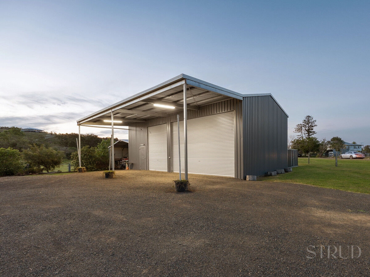 Outside, the property is a dream for hobby farmers, trades, or car enthusiasts. The land is fully fenced and features two dams, multiple gated access points, and beautifully landscaped gardens serviced by numerous watering stations. There’s also a substantial shed setup including extra height clearance, a car hoist, and three phase power, ensuring plenty of space for vehicles, tools, and equipment. The main shed is oriented north to take full advantage of the 22 solar panels connected to a 5kW inverter, supporting an efficient and sustainable power supply.