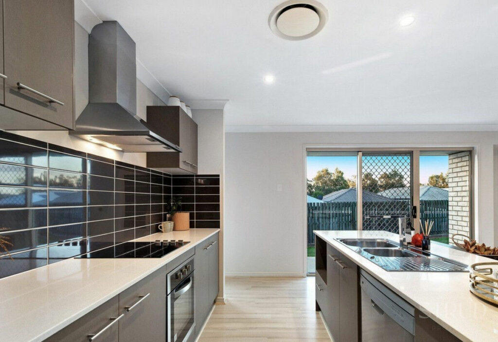 Meal preparation and cooking is made easy with plenty of bench space and features a electric cooktop, electric oven and rangehood, dishwasher, island bench that can double as a breakfast bar, dual sink and plenty of cupboard storage space in the walk-in pantry.