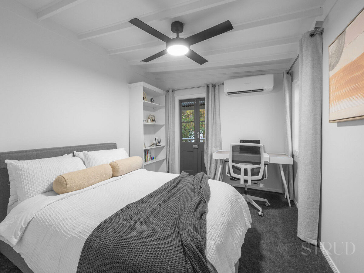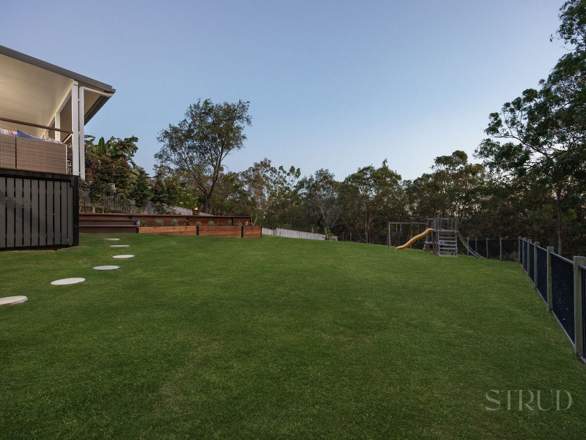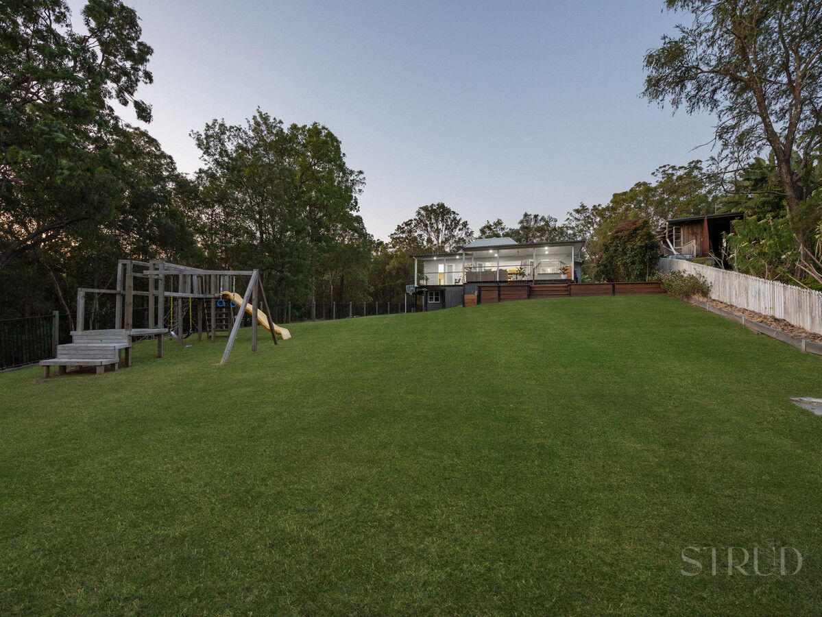 Downstairs, there’s ample storage and workshop space, along with double car accommodation. The backyard itself is a private paradise — leafy, peaceful and the serenity that comes with being surrounded by the bush reserve.