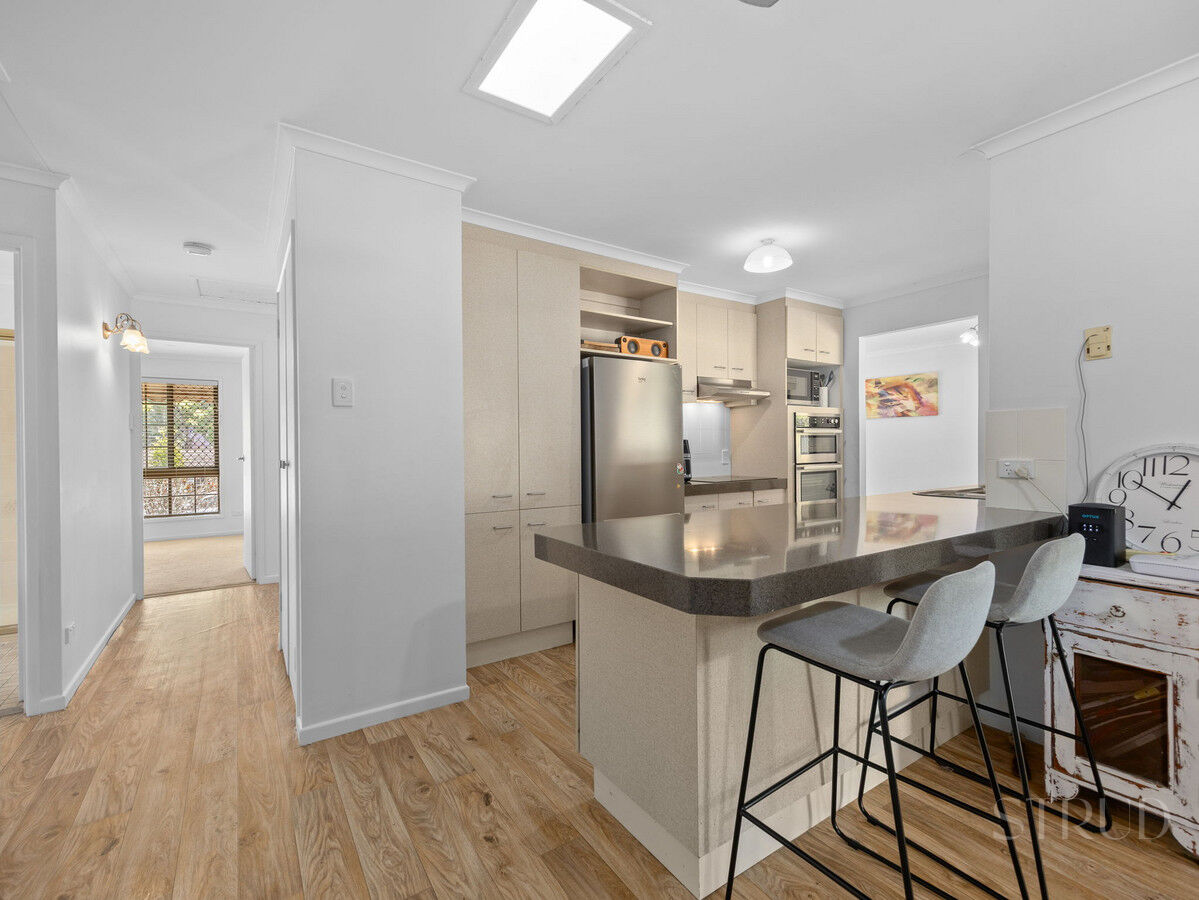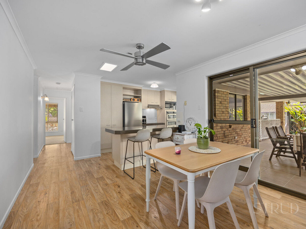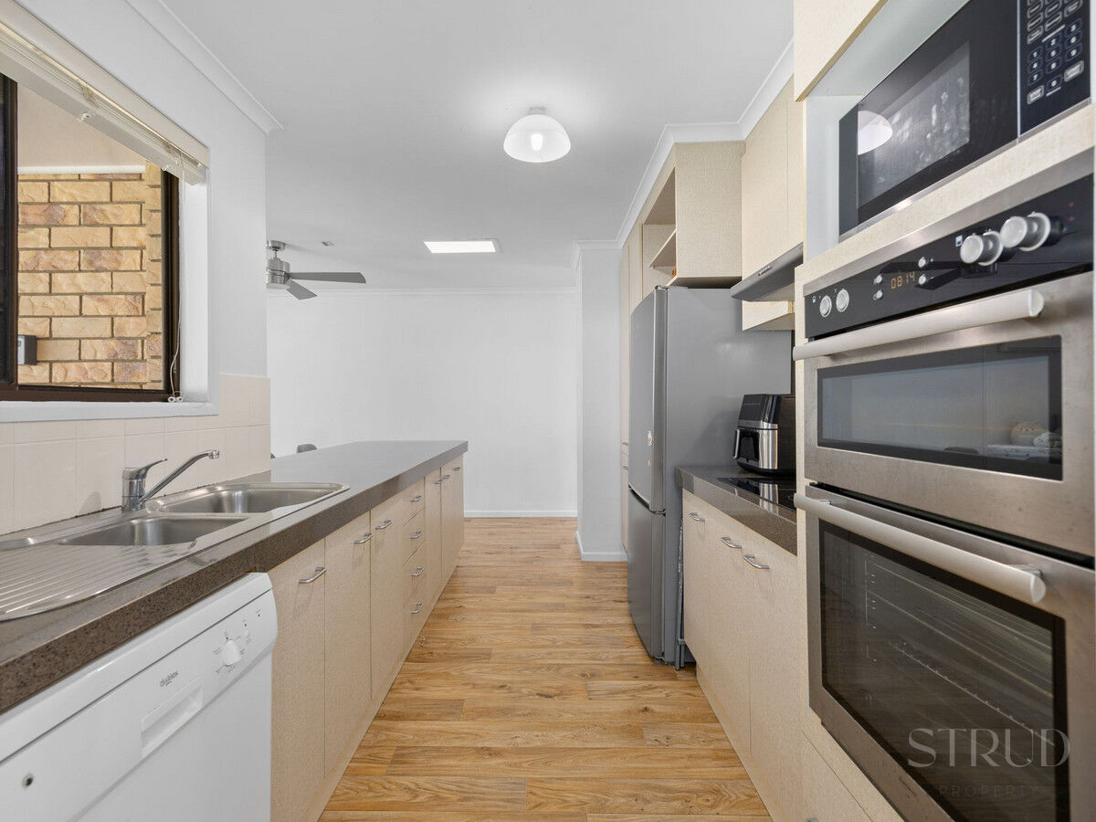 At the heart of the home, the large kitchen and dining area feature modern appliances and vinyl wood floors, flowing effortlessly into the open plan living space. Comfort is guaranteed with air conditioning in every room and ceiling fans throughout, while the living and dining areas are perfect for relaxed family gatherings.
