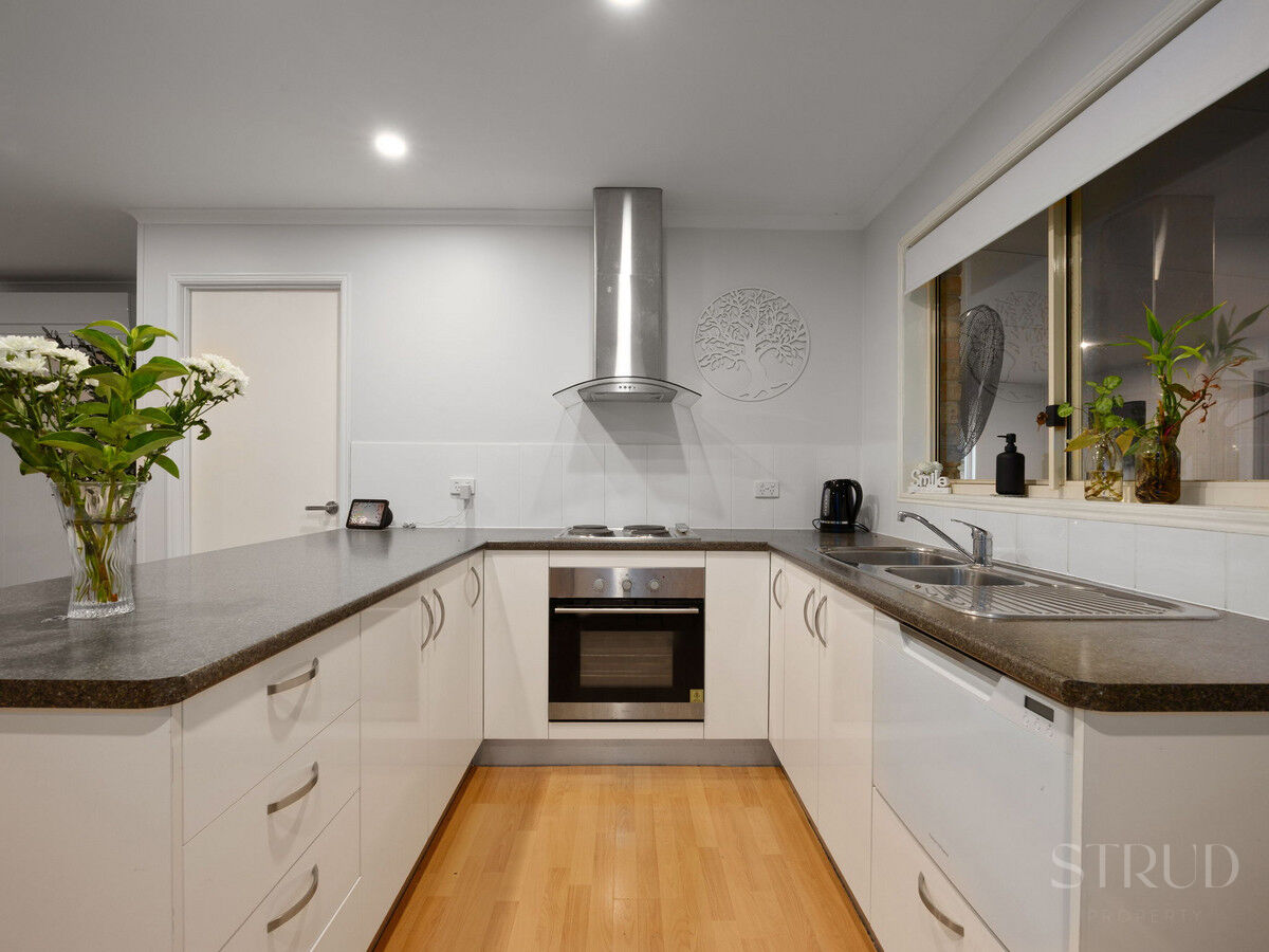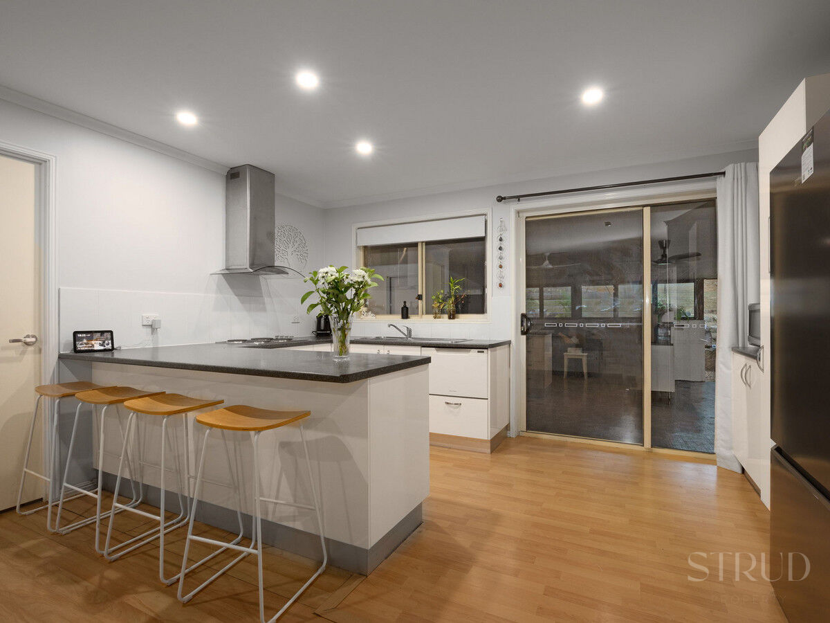 The home itself presents warm, welcoming interiors with thoughtful updates throughout. An updated kitchen anchors the living space, complemented by timber-look flooring, split-system air conditioning and a wood burner for cosy winter nights. Three bedrooms with built-in robes, ceiling fans and air conditioning are supported by two bathrooms, making the layout functional and comfortable for everyday living.