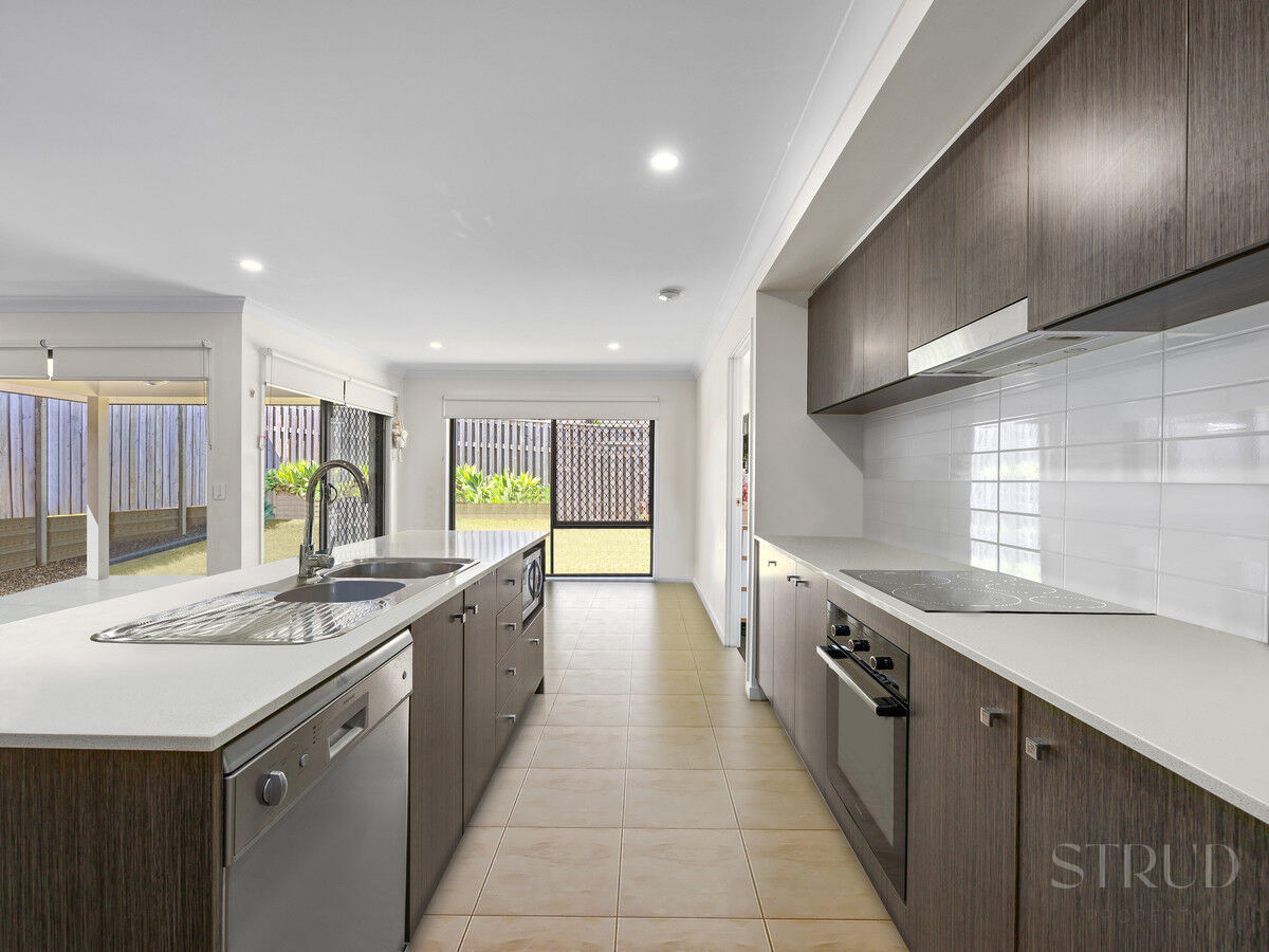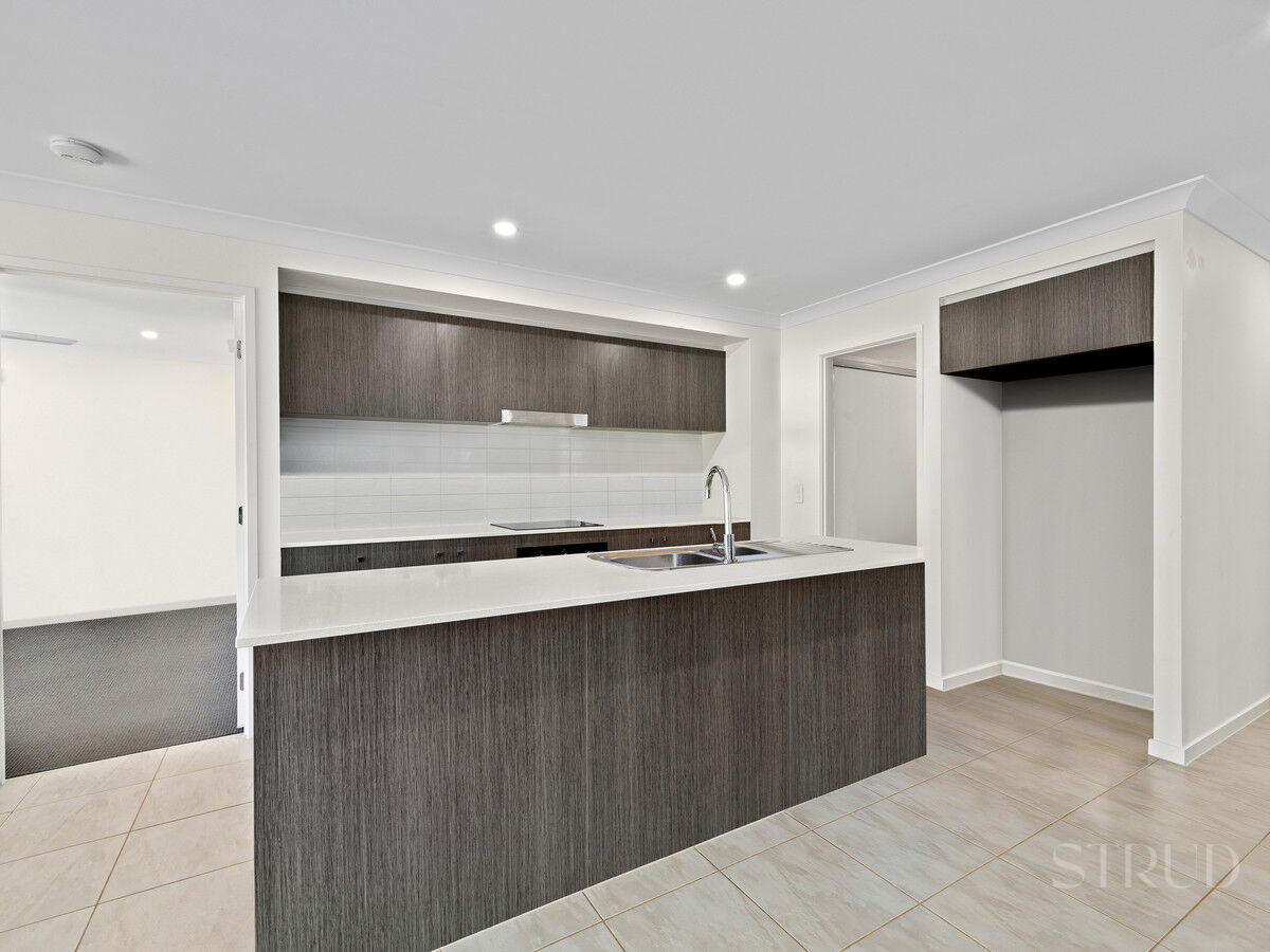 The 2018 built home features a spacious, modern kitchen with ample cupboard and bench space, stone bench tops, electric cooking appliances including cooktop, oven and rangehood + dishwasher.