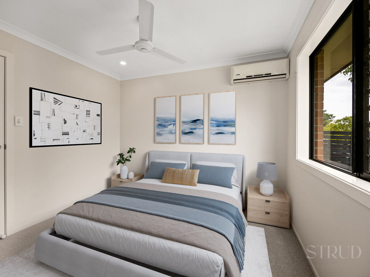 All four bedrooms include built-in wardrobes, with the master suite offering air-conditioning and a private ensuite for comfort and privacy. The main bathroom includes a bathtub, while the second bathroom ensures everyone in the household has their own space.
