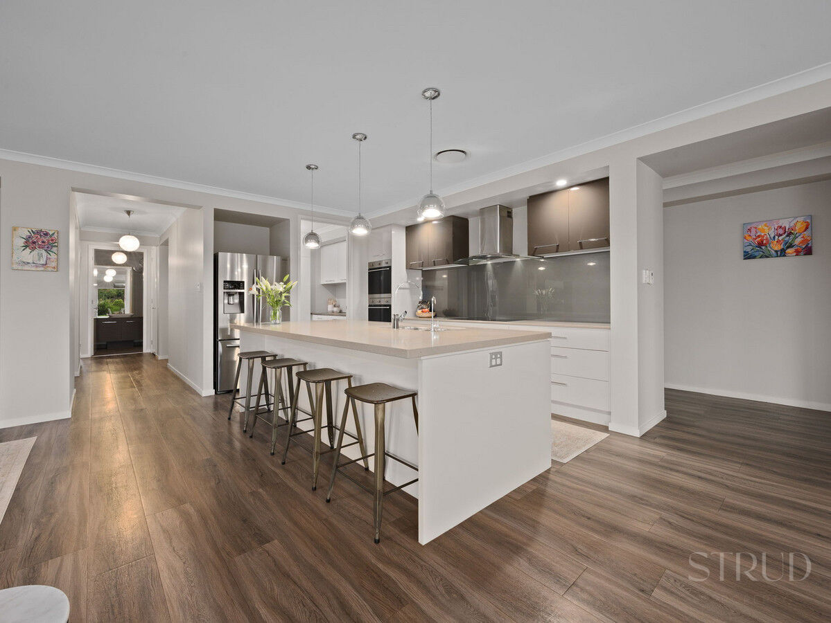 The interior unfolds into generous open-plan living and dining spaces, designed to cater comfortably to everyday family life as well as entertaining. The kitchen sits at the heart of the home and has been finished with quality appointments including a Bosch induction cooktop, Smeg ovens and Smeg rangehood, complemented by ample bench space and storage. Plantation shutters add warmth and refinement throughout the home, while vinyl hybrid flooring underfoot brings durability and modern style. Ducted air conditioning and ceiling fans ensure year-round comfort, creating a home that feels as good to live in as it does to present.