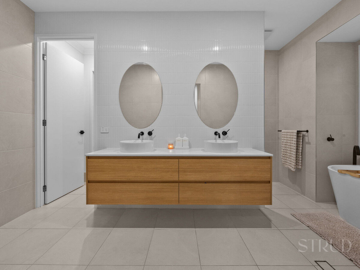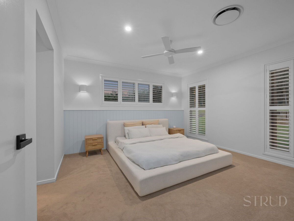 The master suite is quietly positioned for privacy and indulgence, featuring a walk-in his and hers robe and ensuite. Each of the remaining bedrooms is equipped with built-ins and ceiling fans, while ducted air conditioning ensures seasonal comfort throughout.